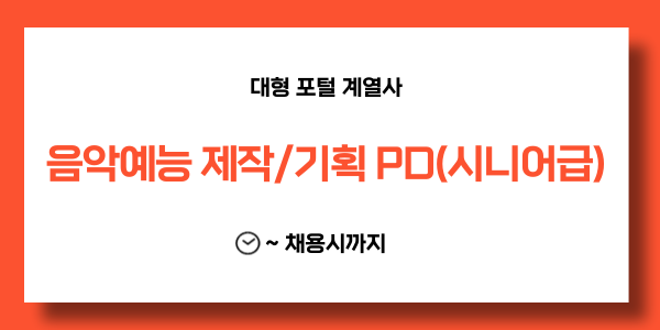 📢 [대형 포털 계열사] 음악 예능 제작/기획 PD(시니어급) - 채용시까지