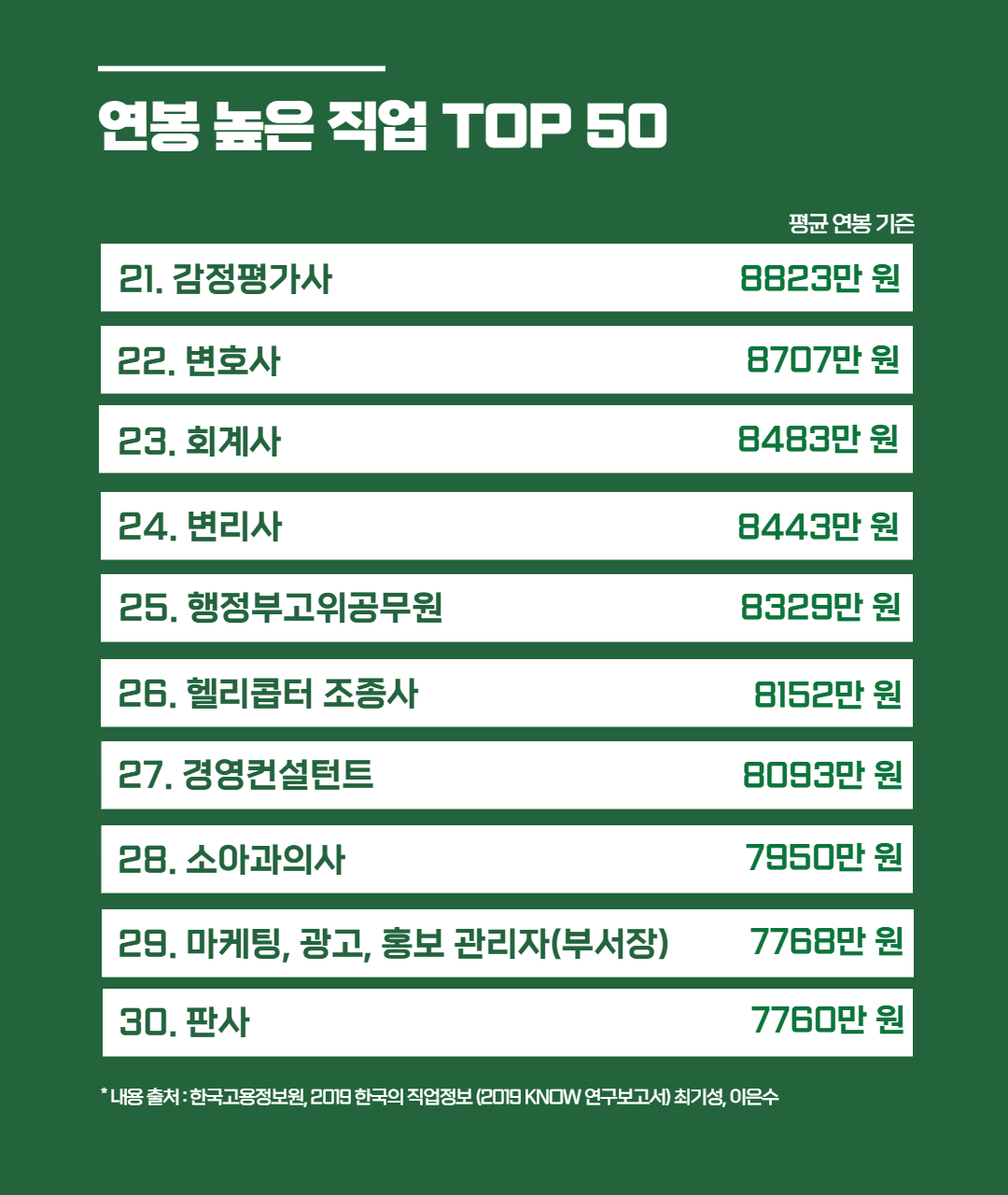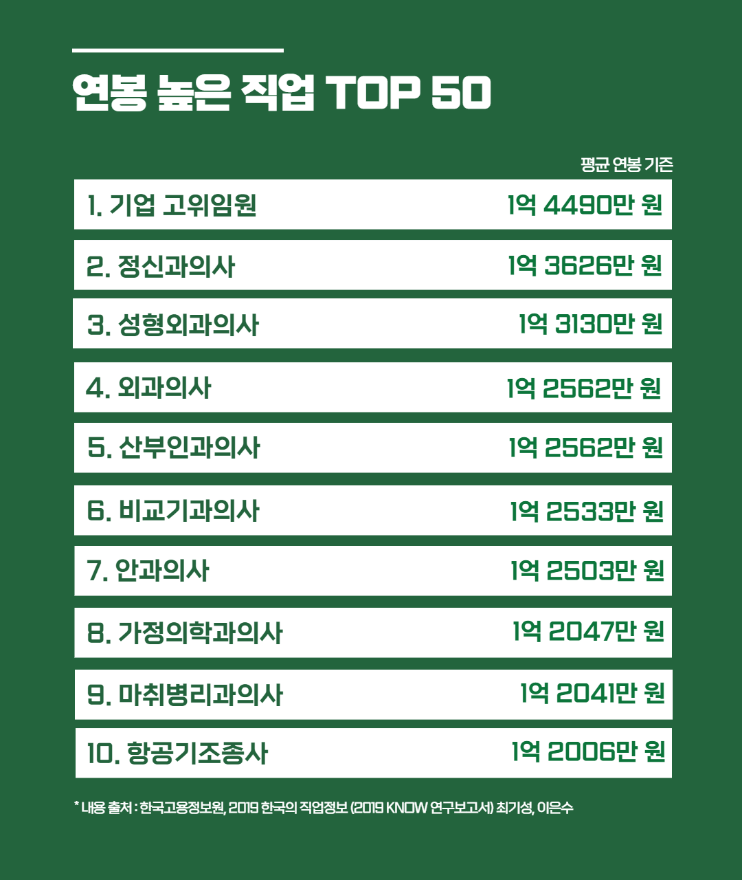 연봉 높은 직업 TOP 50 순위