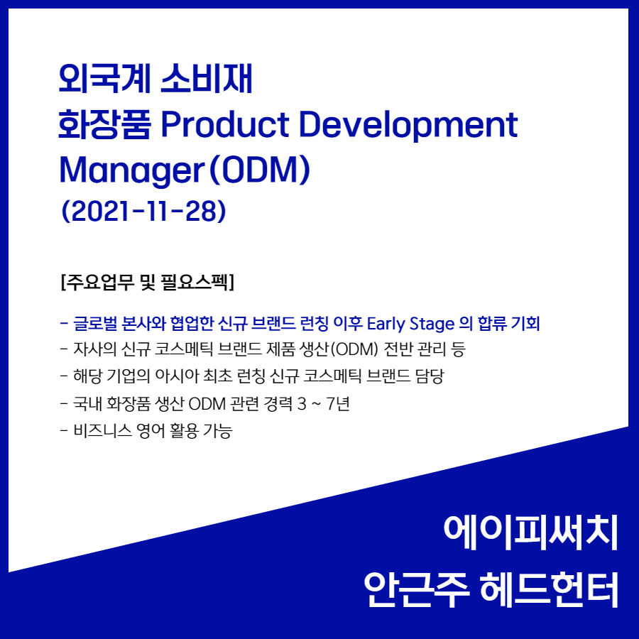 📢 [외국계 소비재] Product Development Manager(ODM) (2021-11-28)