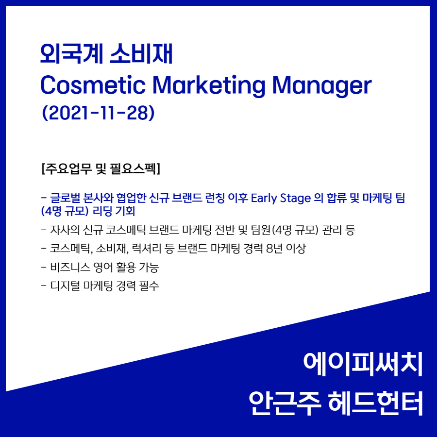 📢 [외국계 소비재] Cosmetic Marketing Manager (2021-11-28)