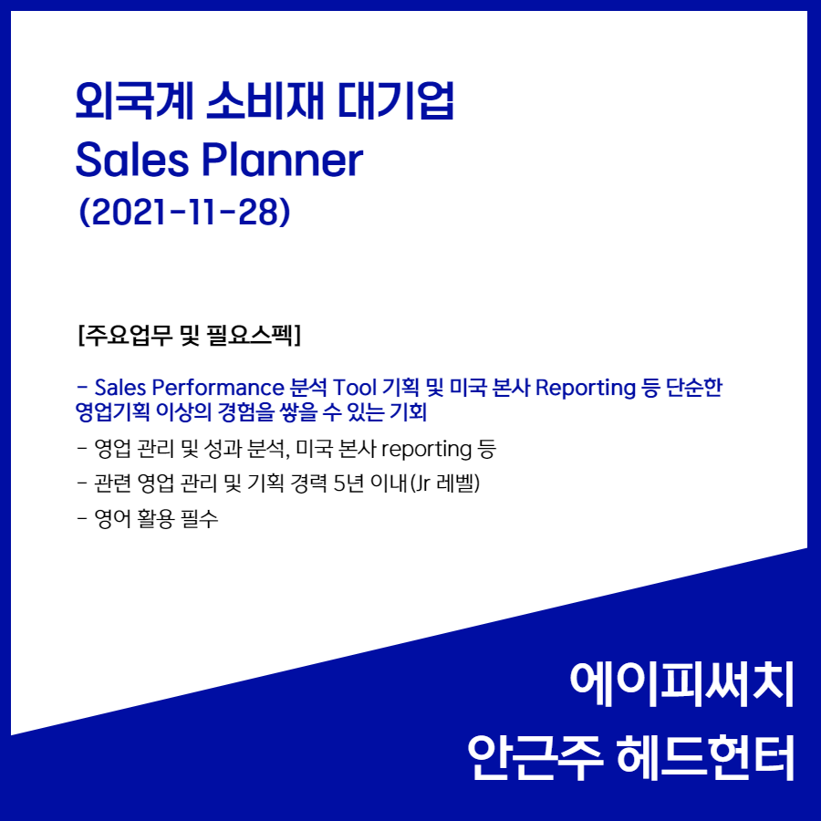 📢 [외국계 소비재 대기업] Sales Planner (2021-11-28)