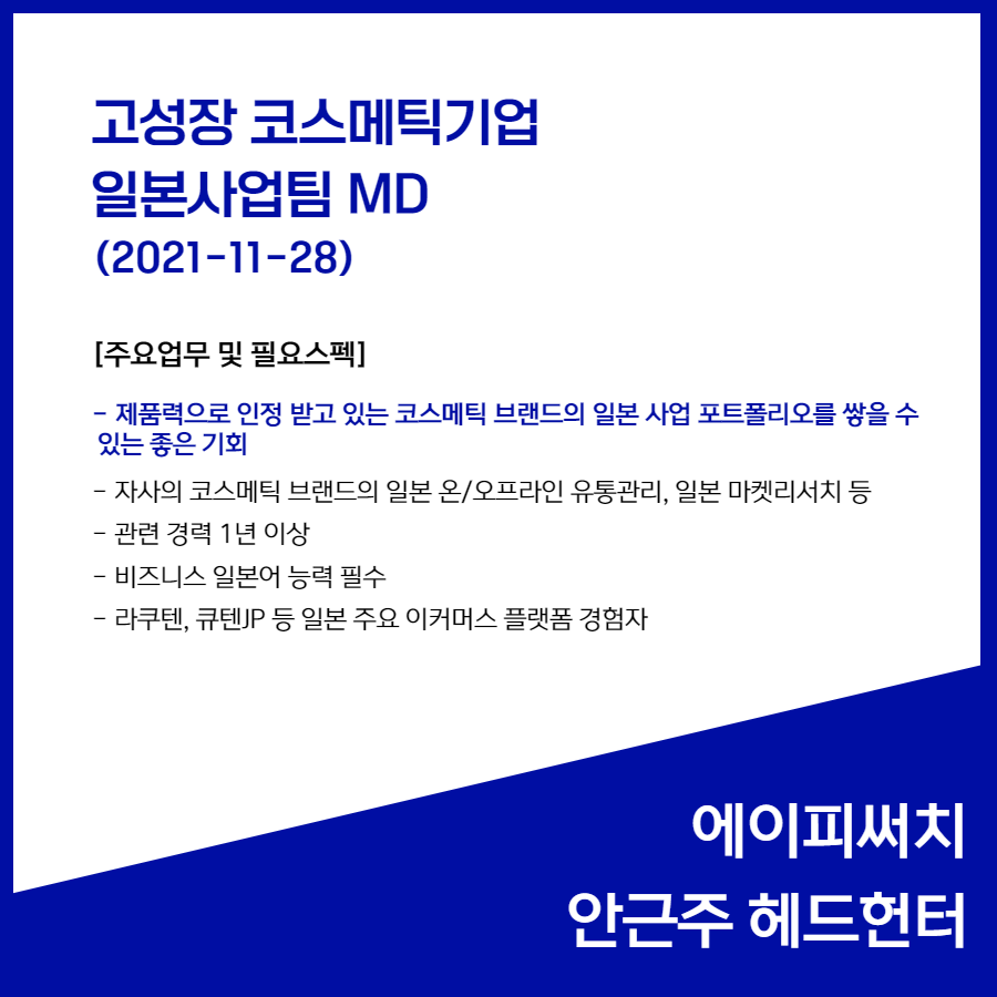 📢 [고성장 코스메틱 기업] 일본사업팀 MD (2021-11-28)