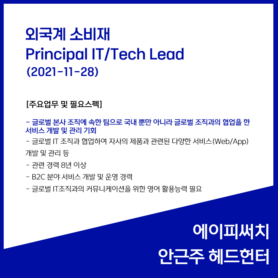 📢 [외국계 소비재] Principal IT/Tech Lead (2021-11-28)