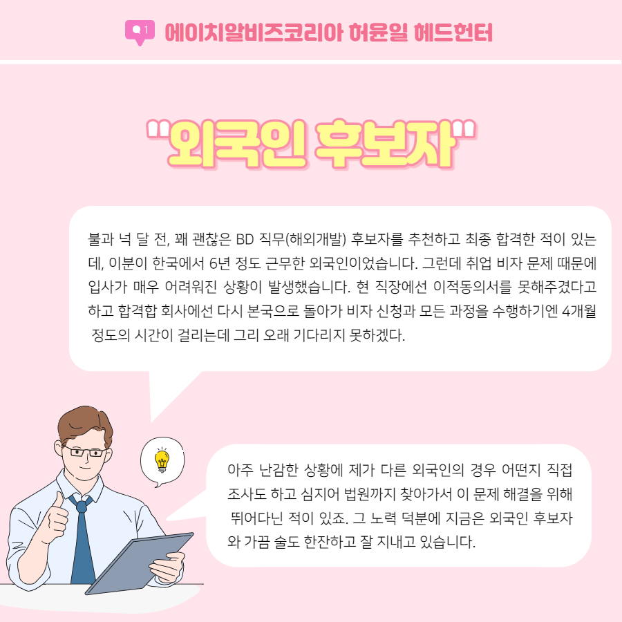 👉 에이치알비즈코리아 허윤일 헤드헌터 프로필 바로가기!