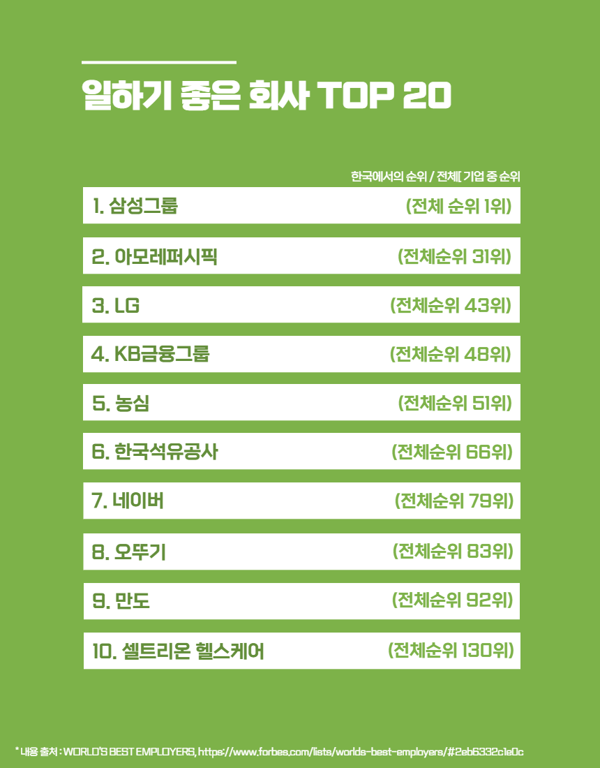 👉 WORLD'S BEST EMPLOYERS 전체 순위