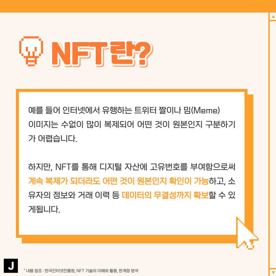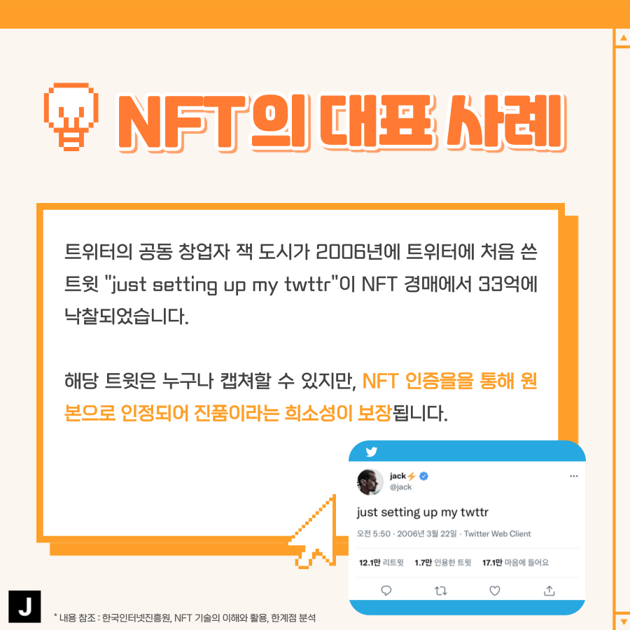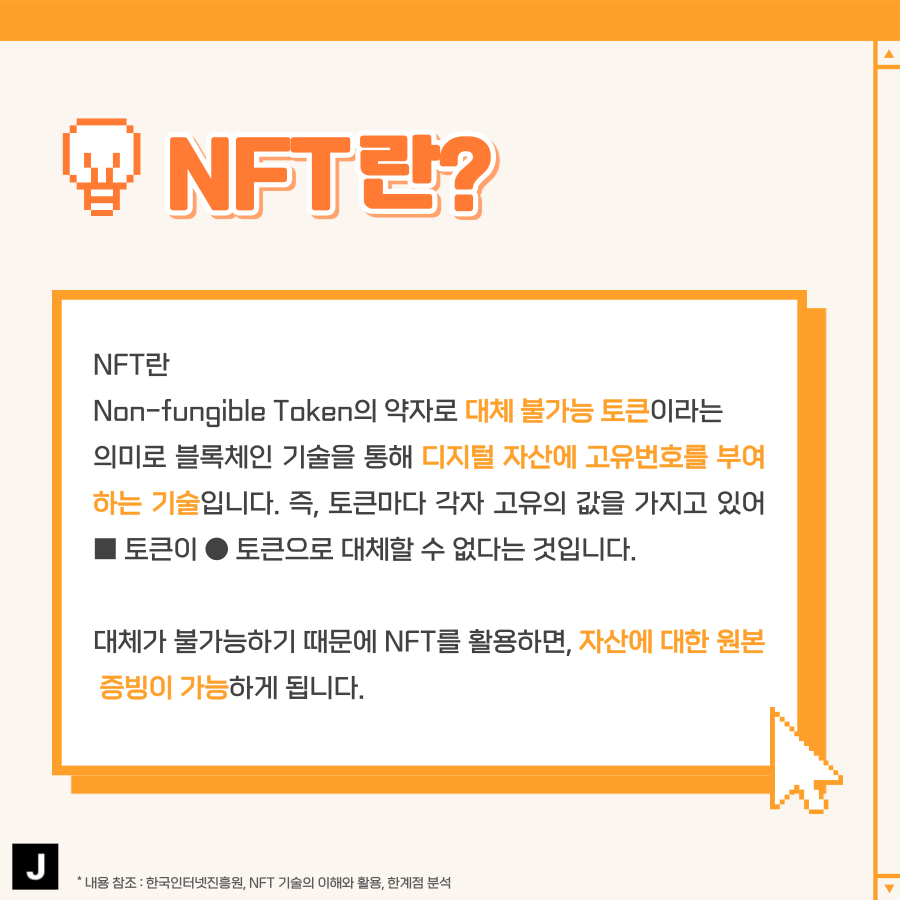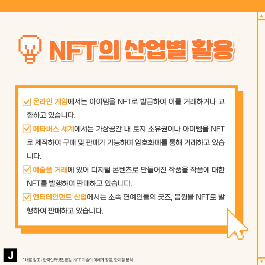 디지털 자산을 소유한 거의 모든 산업에 NFT가 활용될 수 있기 때문에 화제가 되는 것 같습니다. 오늘은 NFT의 의미와 대표 사례, NFT의 산업별 활용, 그리고 한계점까지 한 번 알아볼까요?