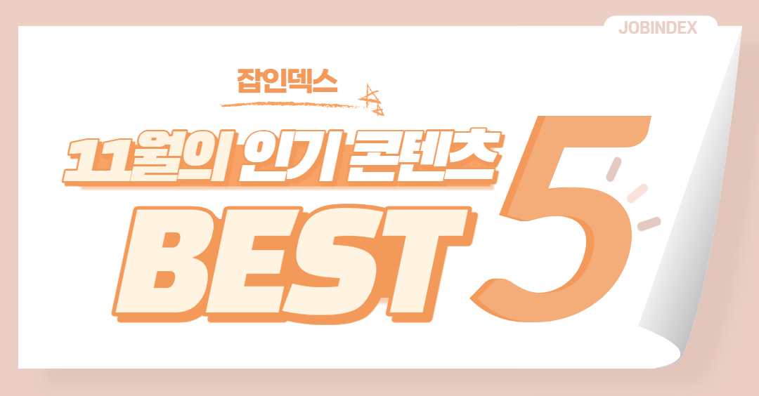 많은 분들께서 본 🏆 잡인덱스 11월의 인기 콘텐츠 BSET 5 🏆를 준비해봤습니다. 과연, 어떤 콘텐츠가 가장 인기가 많았을지 확인해 볼까요?
