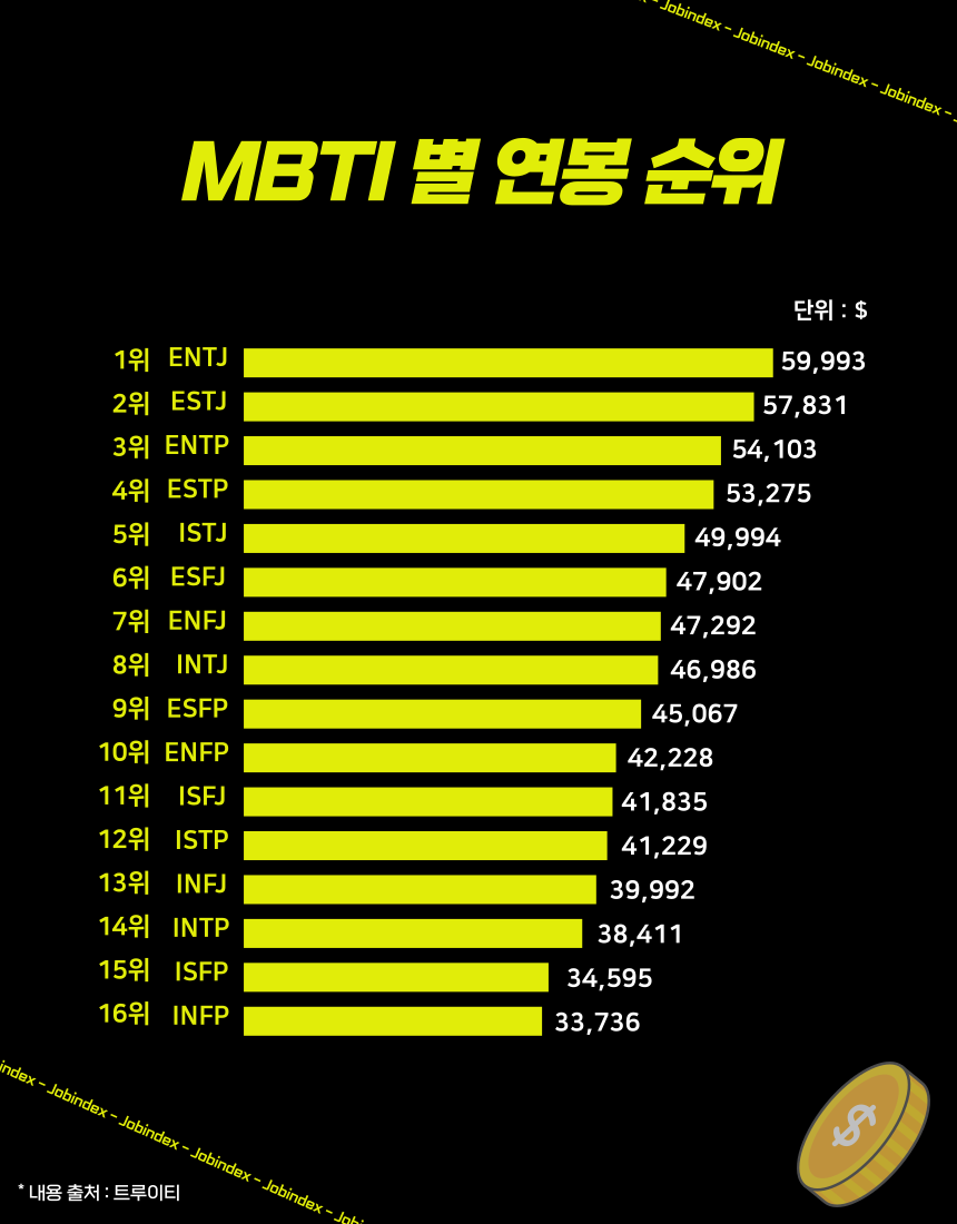 재미로 보는 MBTI 별 연봉순위니, 과몰입은 자제해주세요!! 😉
