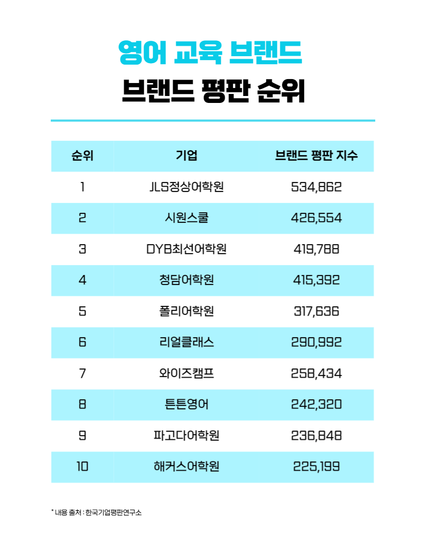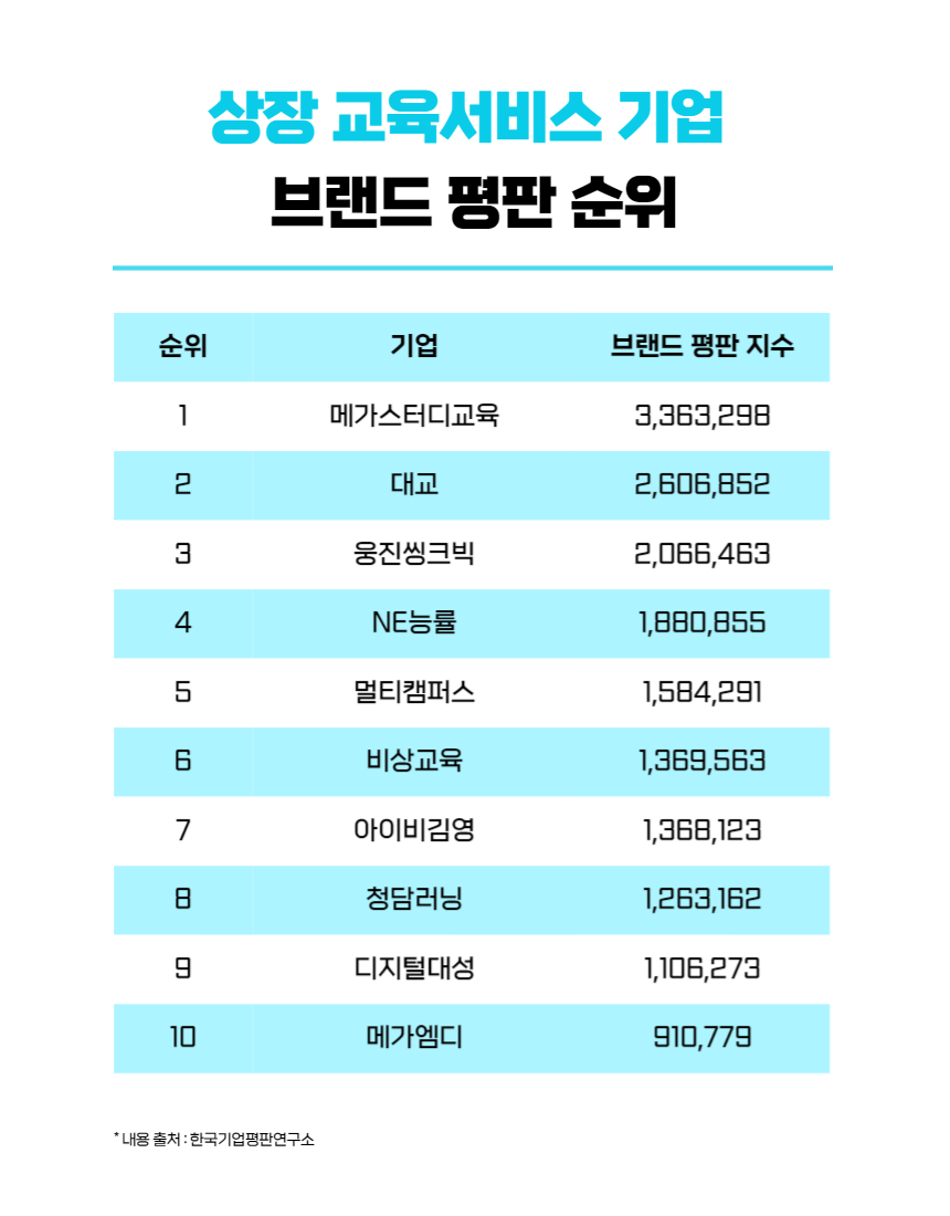 사교육만큼 치열한 교육 서비스 시장에서 살아남기 위해서는 브랜드 평판만큼 중요한 게 없는데요, 오늘은 상장 교육 서비스 기업과 영어 교육 브랜드의 브랜드 평판 순위를 준비했습니다.