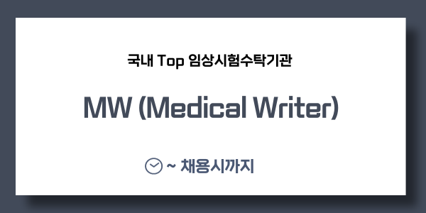 📢 [국내 Top 임상시험수탁기관 (CRO)] MW (Medical Writer) - 채용시까지