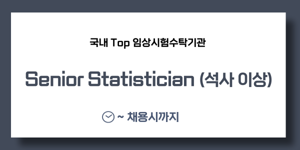 📢 [국내 Top 임상시험수탁기관 (CRO)] Senior Statistician - 채용시까지