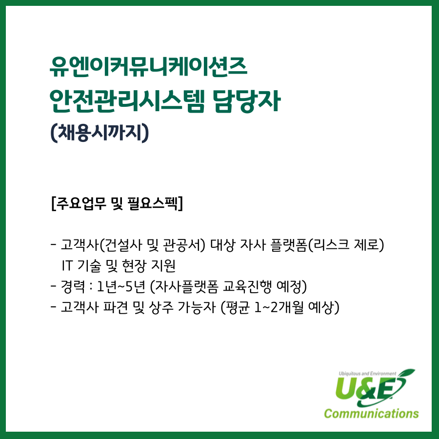 📢 [유엔이커뮤니케이션즈] 안전관리시스템 담당자 (채용시까지)