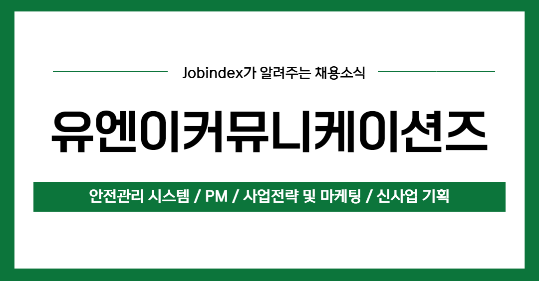유엔이커뮤니케이션즈에서 안전관리 시스템 담당자, PM 담당자, 사업전략 및 마케팅 담당자, 신사업 기획 담당자를 모집한다고 합니다.