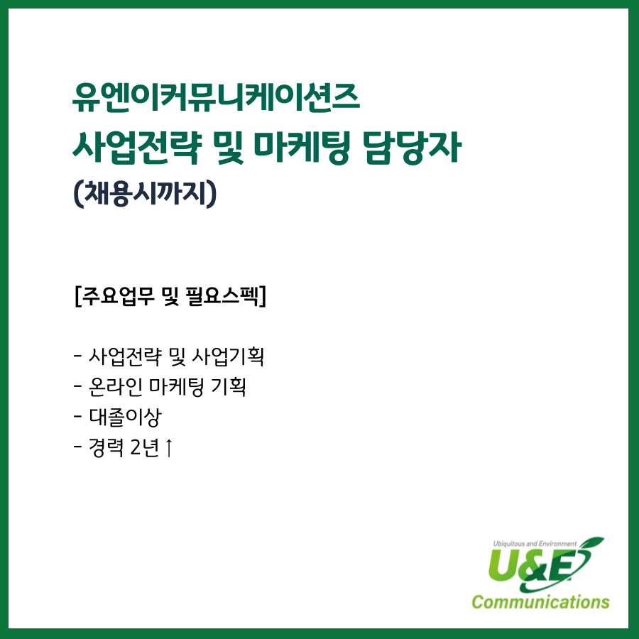 📢 [유엔이커뮤니케이션즈] 사업전략 및 마케팅 담당자 (채용시까지)