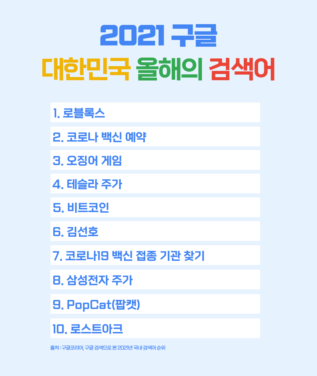 2021 구글 올해의 검색어 TOP 10