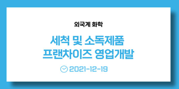📢 [외국계 화학] 세척 및 소독제품 프랜차이즈 영업개발(3년 이상) - 2021-12-19까지