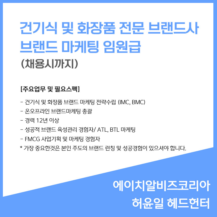 📢 [건기식 및 화장품 전문 브랜드사] 브랜드마케팅 임원급 - 채용시까지