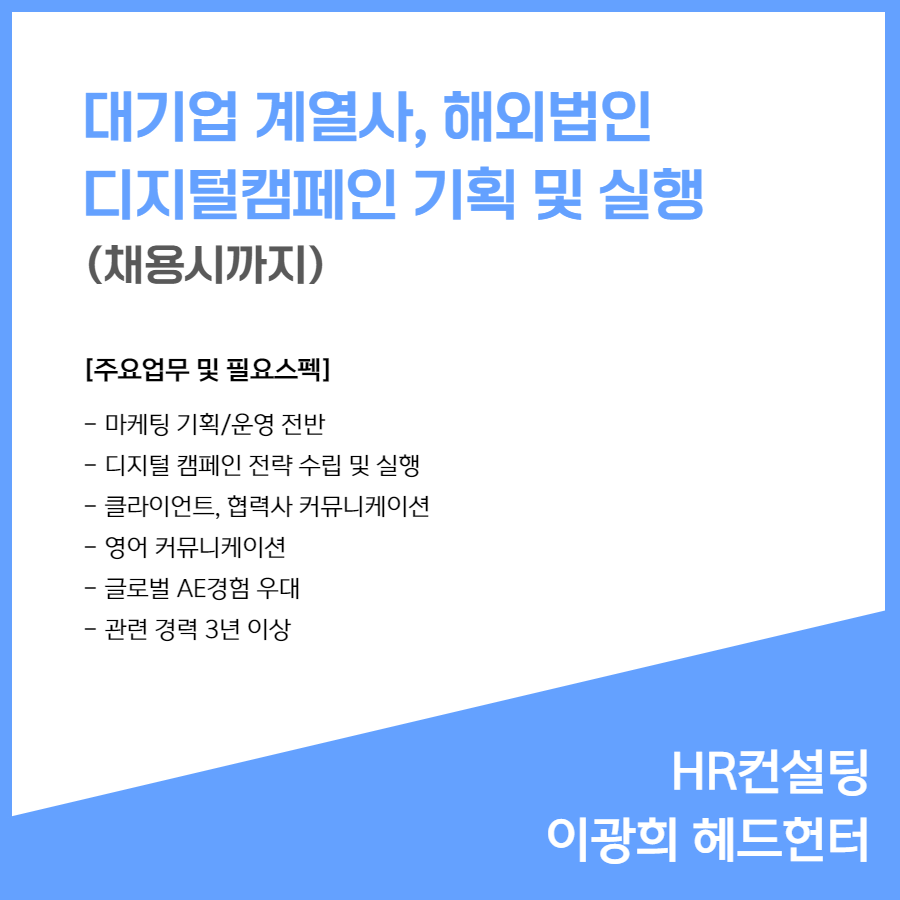 📢 [대기업 계열사, 해외법인] 디지털캠페인 기획 및 실행 - 채용시까지