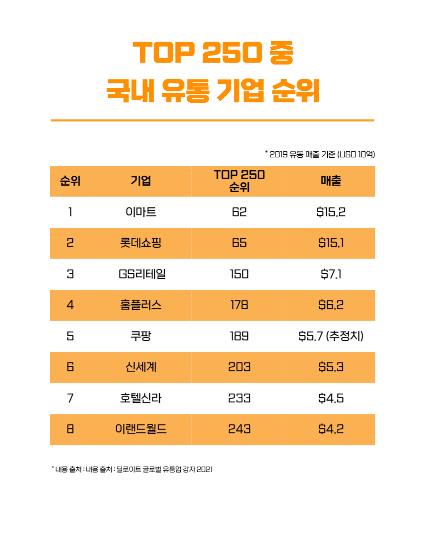 가장 빠르게 성장하고 있는 글로벌 TOP 10 유통기업과 TOP 250 순위에 진입한 국내 기업에는 어떤 곳이 있을지 알아볼까요?