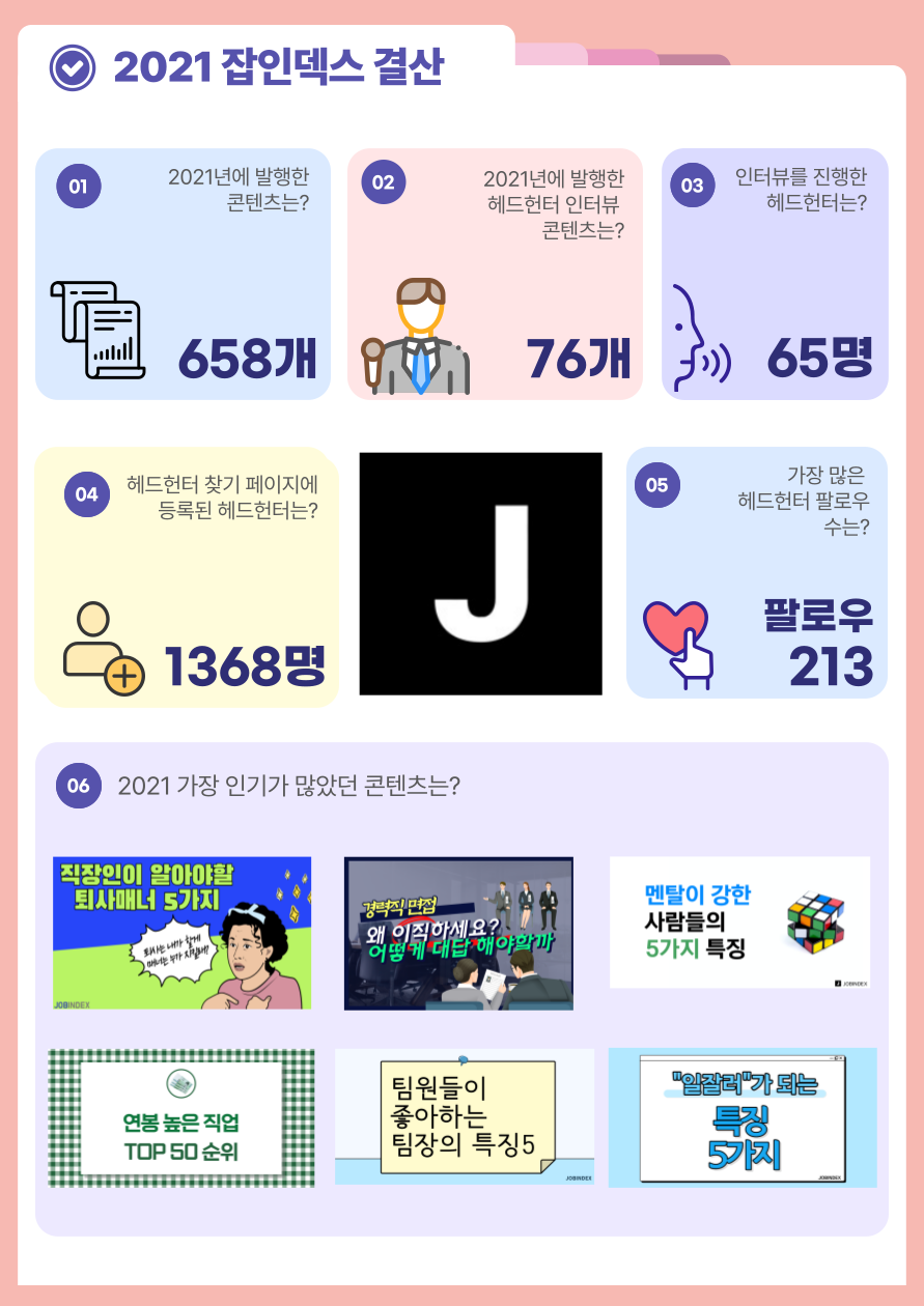 2021년이 앞으로 얼마 남지 않았습니다. 올 한 해 잡인덱스를 돌아보는 시간으로 잡인덱스 결산 콘텐츠를 준비했습니다.