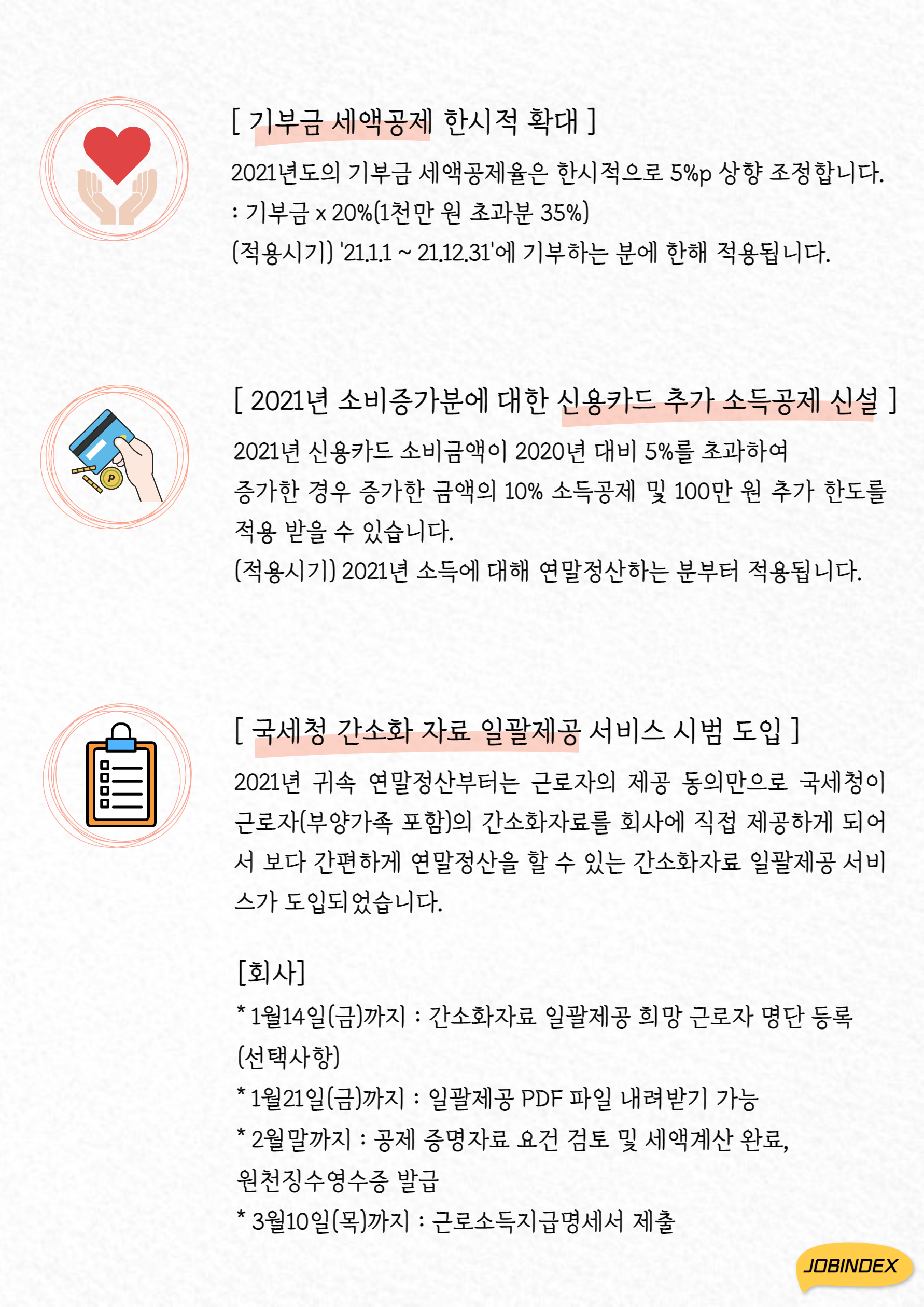그래서 오늘은 올해부터 신설되는 공제 항목과 변경되는 공제율 그리고 연말정산 일정까지 알려드리려고 합니다:)
