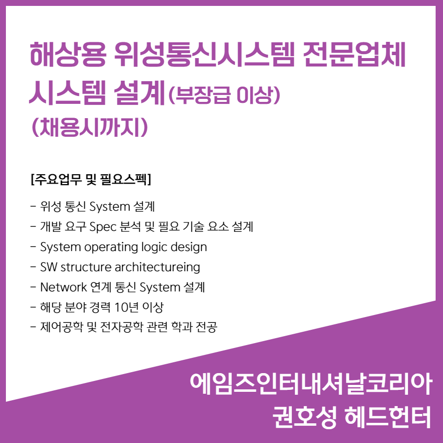 📣 [해상용 위성통신시스템 전문업체] - 시스템 설계 (부장급 이상)