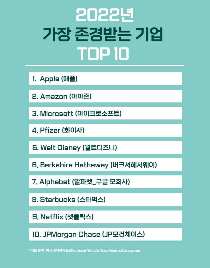 2022년 세계에서 가장 존경받는 기업 TOP 10