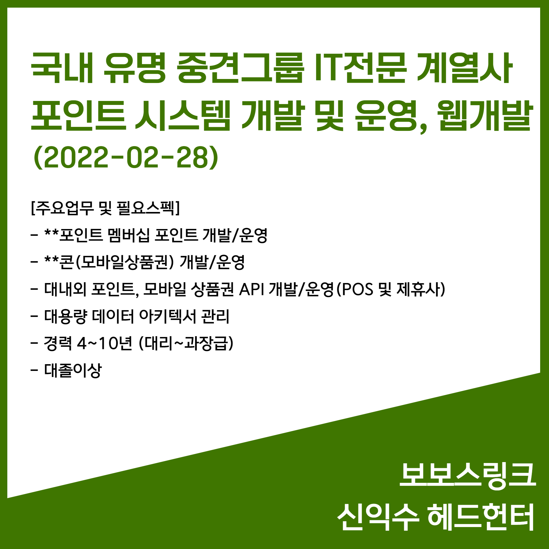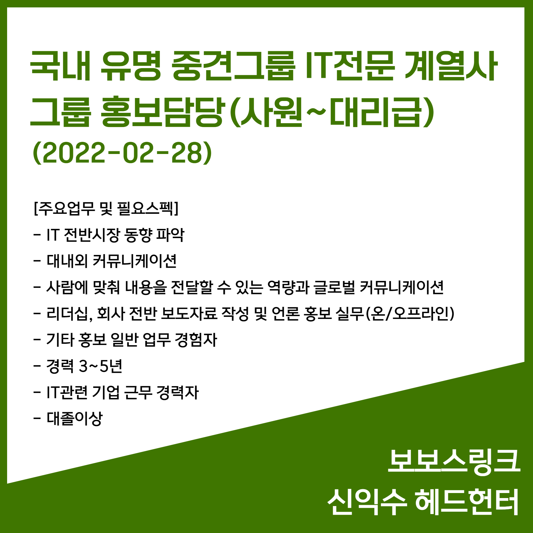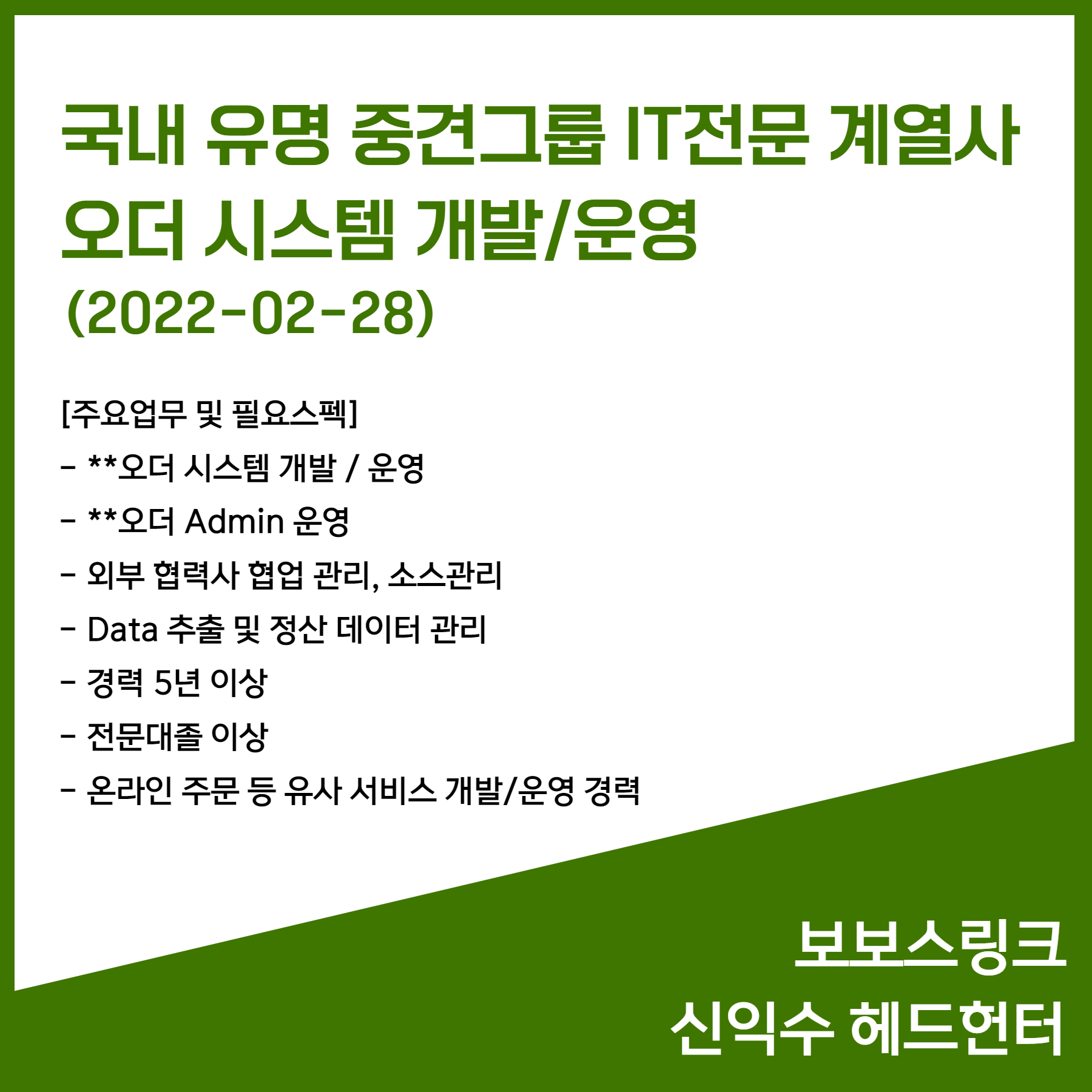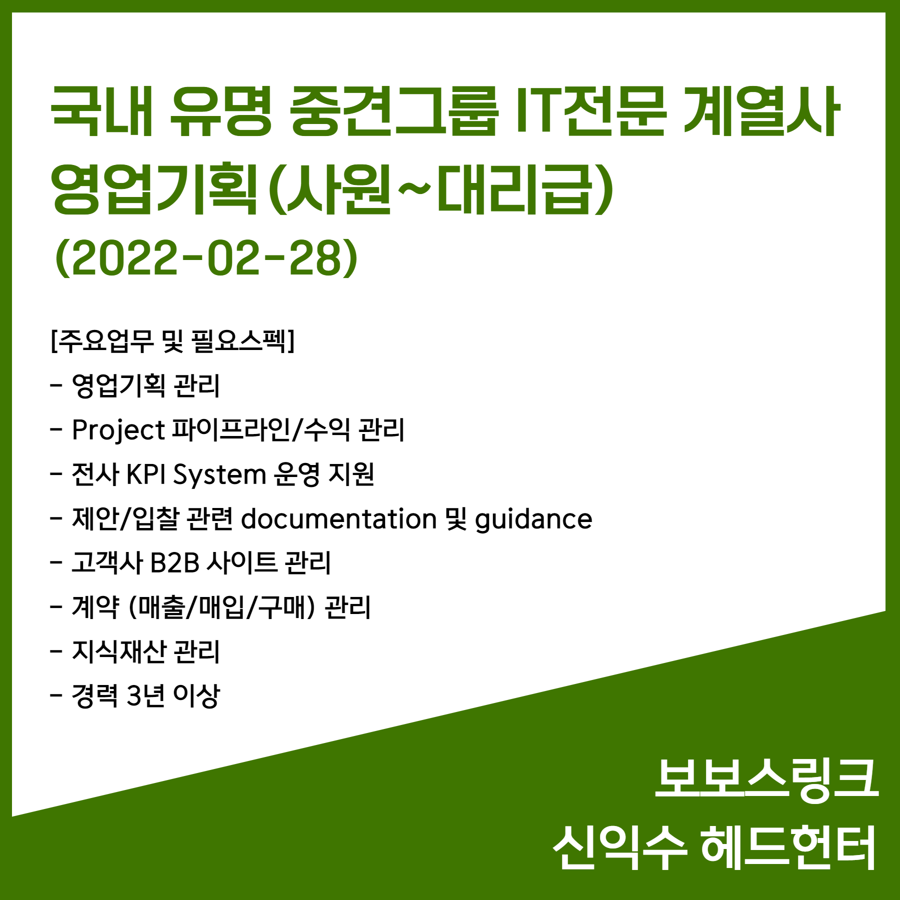 2월 신규 채용 소식 - 보보스링크 신익수 헤드헌터