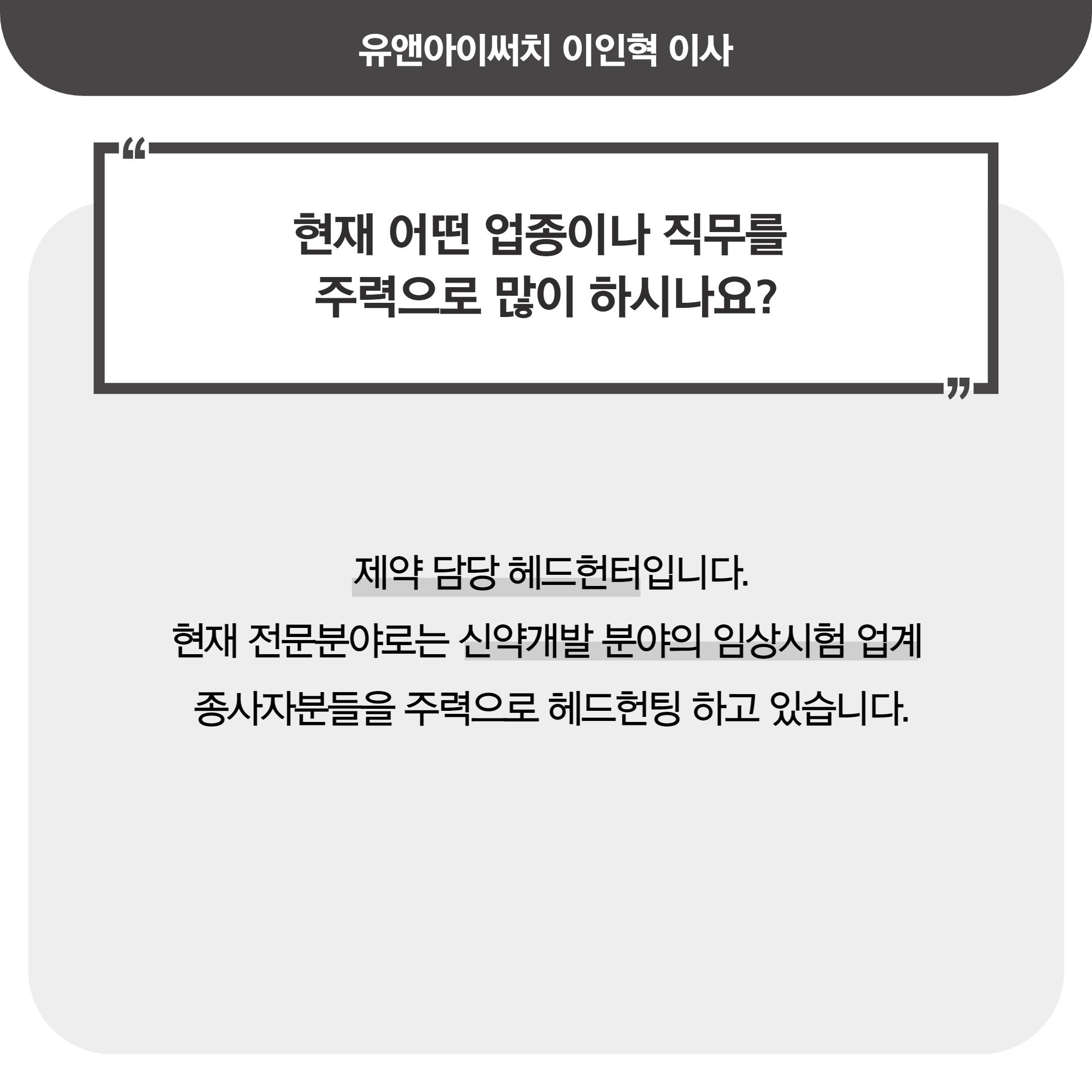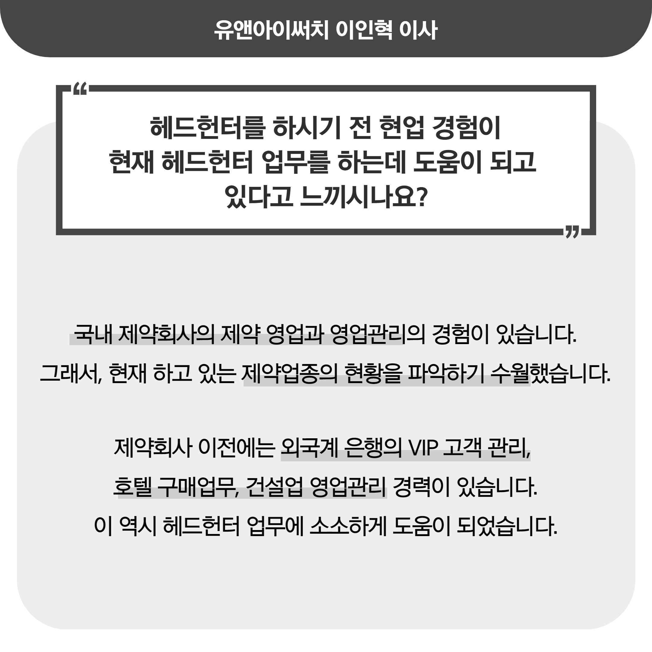 [헤드헌터 인터뷰 콘텐츠] 유앤아이써치 이인혁 헤드헌터