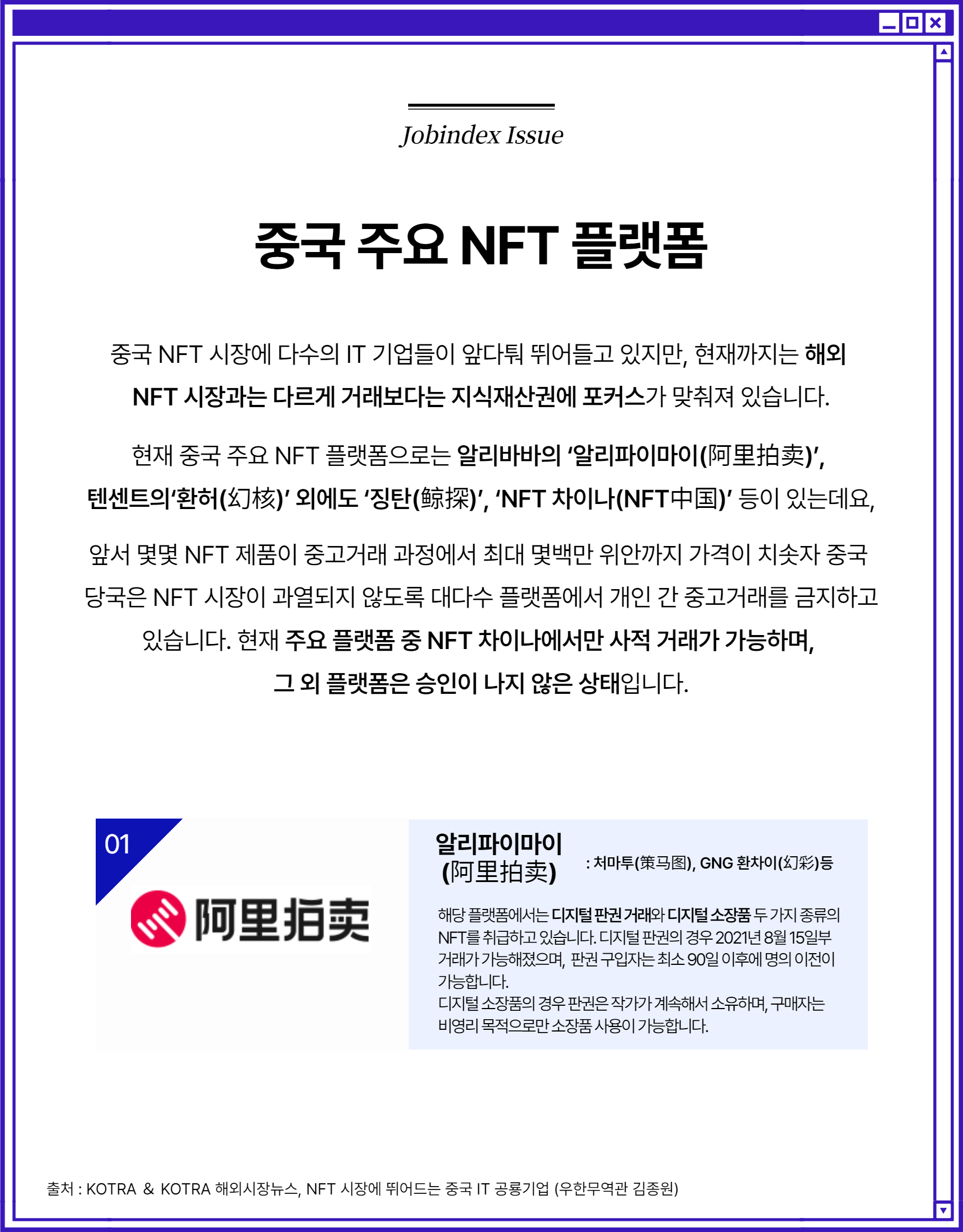 출처 : 'NFT 시장에 뛰어드는 중국 IT공룡기업' ⓒ KOTRA & KOTRA 해외시장뉴스