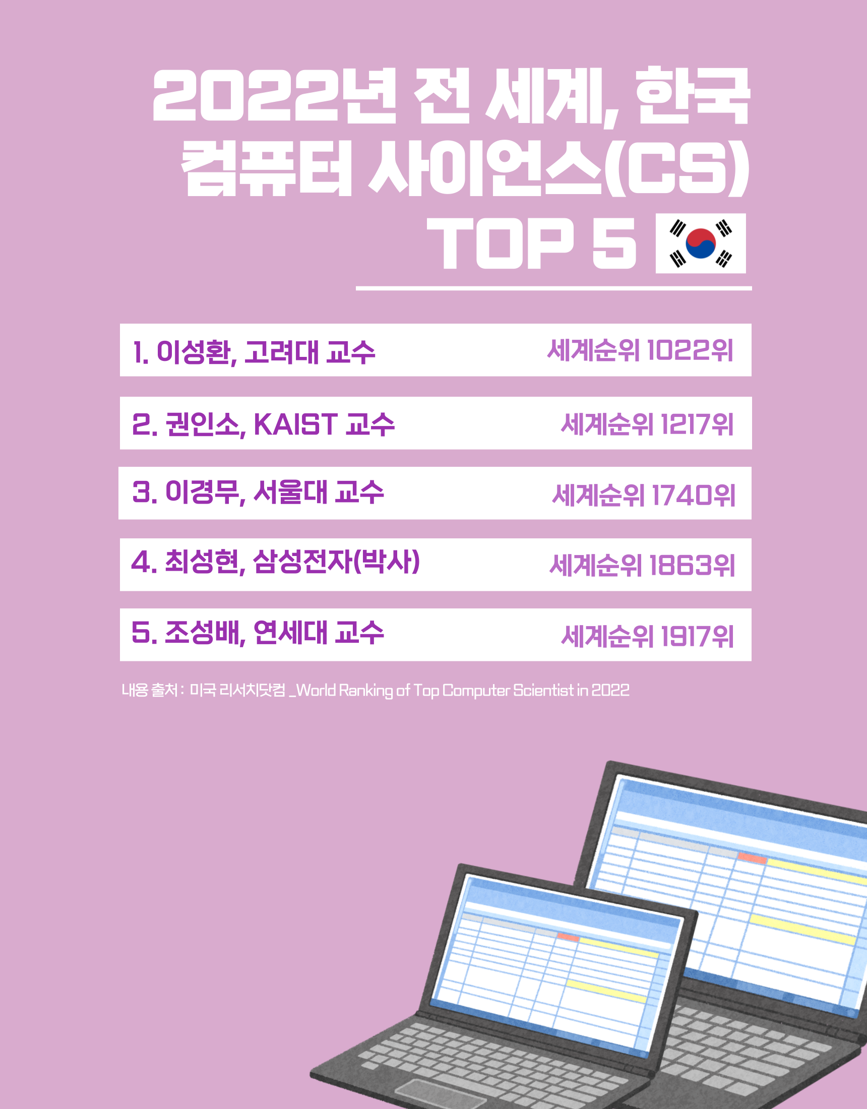출처 : 미국 리서치닷컴_World Ranking of Top Computer Scientist in 2022