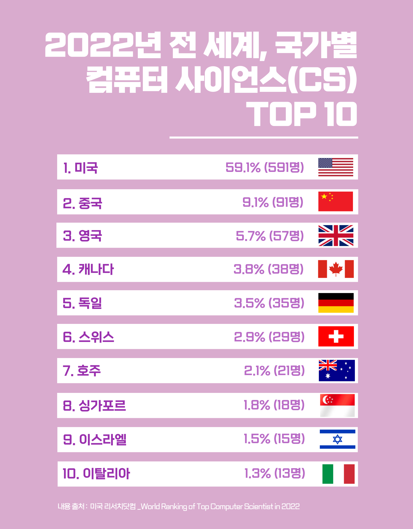 2022년 국가별 컴퓨터 사이언스(CS) TOP 10