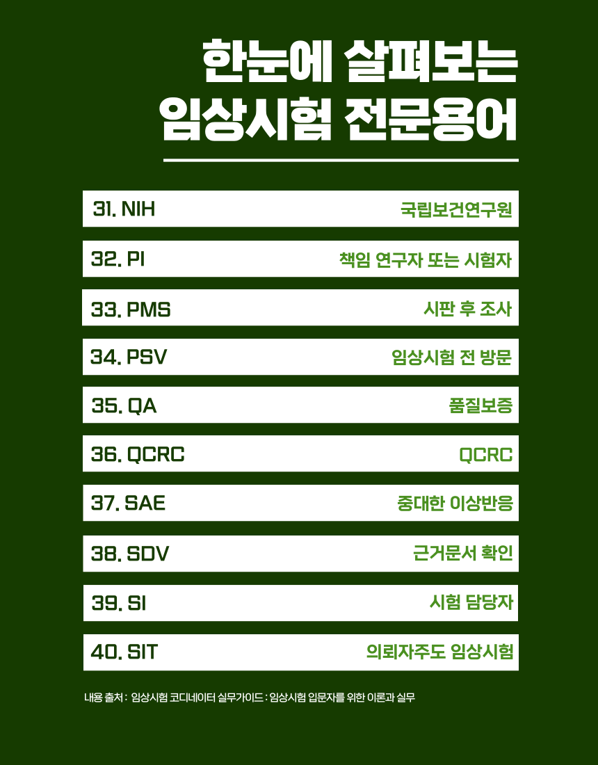 '한 눈에 살펴보는 임상시험 전문용어'를 준비해봤습니다😉