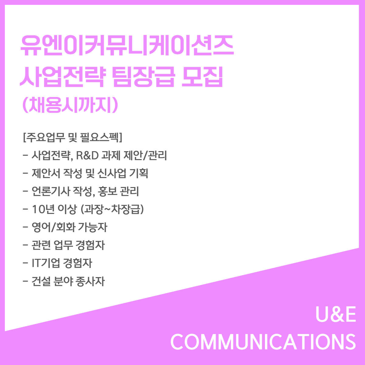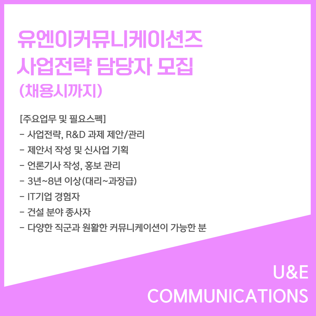 📢 [유엔이커뮤니케이션즈] - 사업전략 담당자(채용시까지)