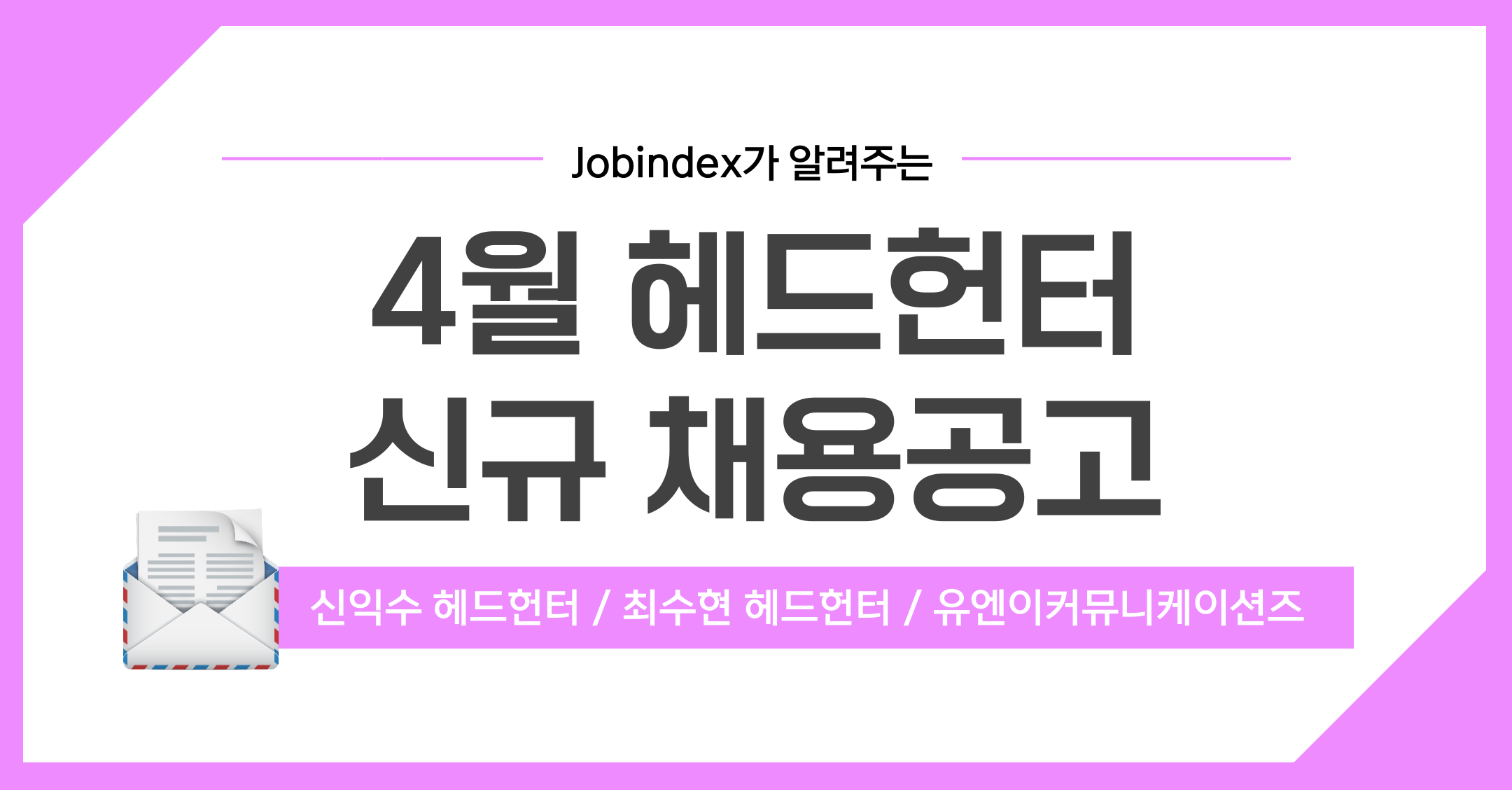 4월 헤드헌터 신규 채용소식 - 신익수 헤드헌터 / 최수현 헤드헌터 / 유엔이커뮤니케이션즈