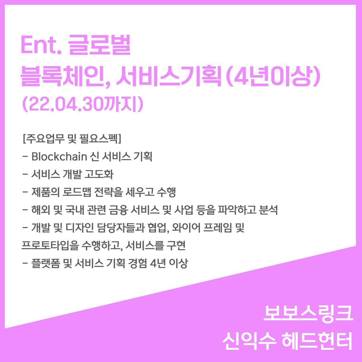 📢 [Ent. 글로벌] - 서비스기획, 4년이상(22.04.30까지)