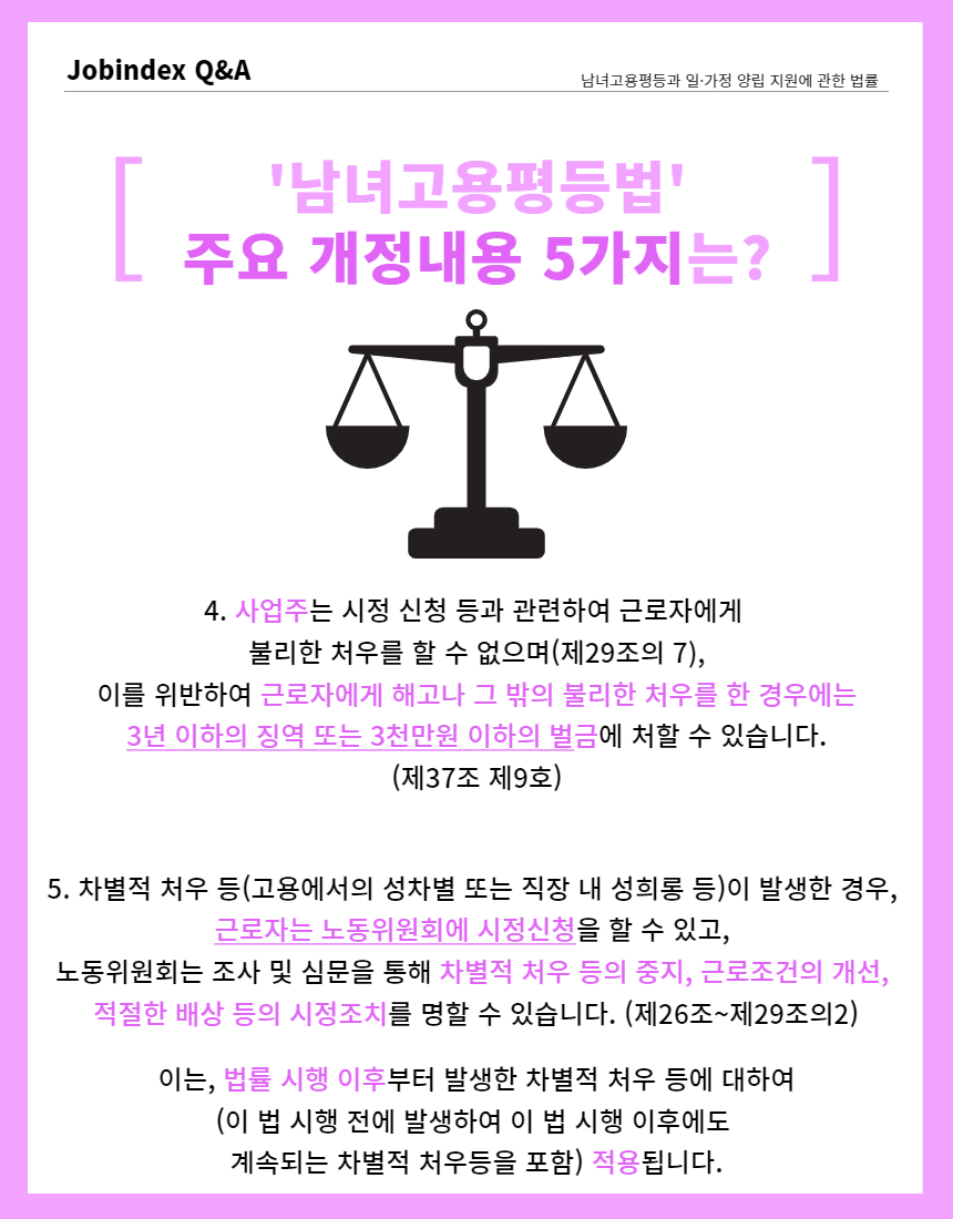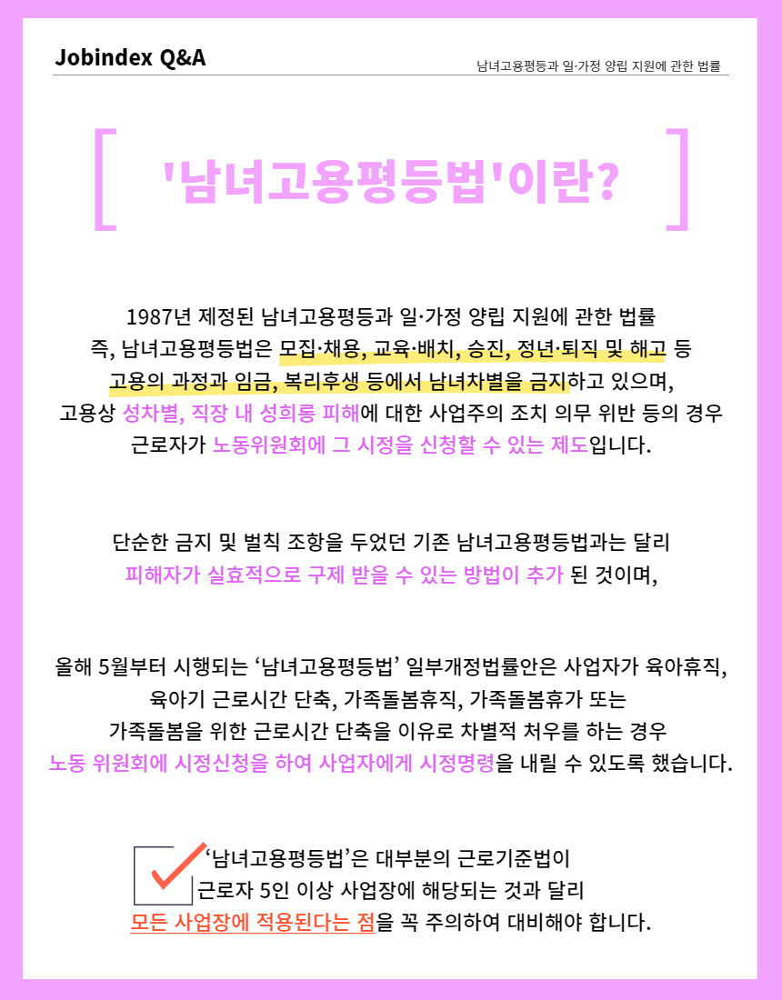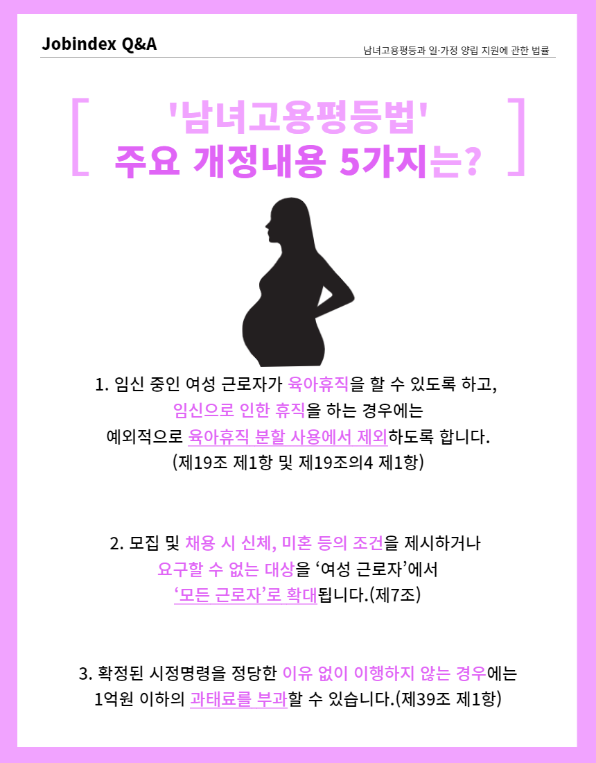 그래서 오늘은 남녀고용평등법이란 무엇이며, 어떤 부분들이 개정되었는지 함께 알아보려고 합니다:)