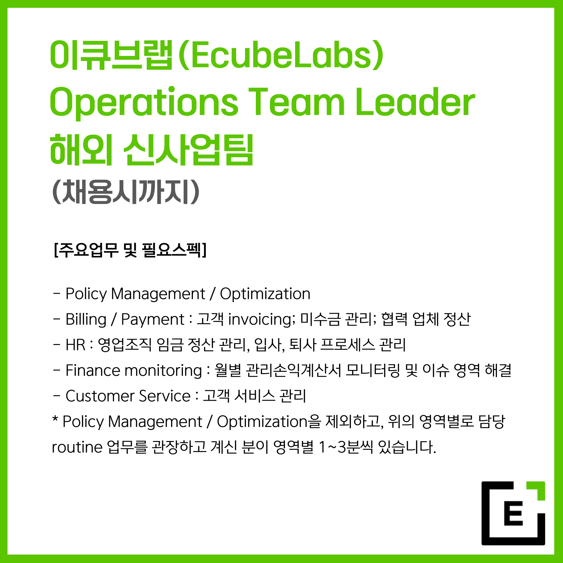 📣 [이큐브랩 EcubeLabs] - Operations Team Leader (채용시까지)