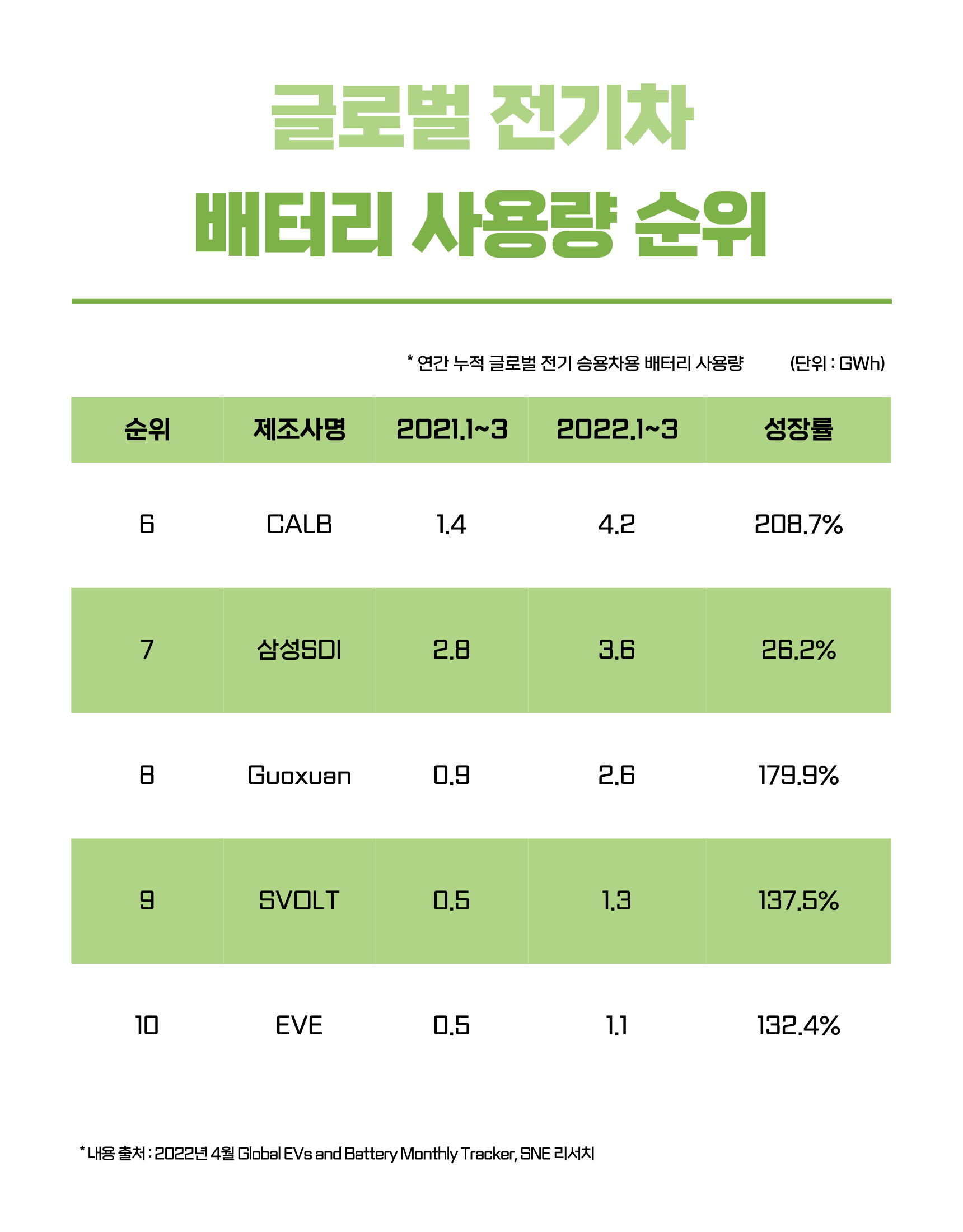 출처 : 2022년 4월 Global EVs and Battery Monthly Tracker, SNE 리서치