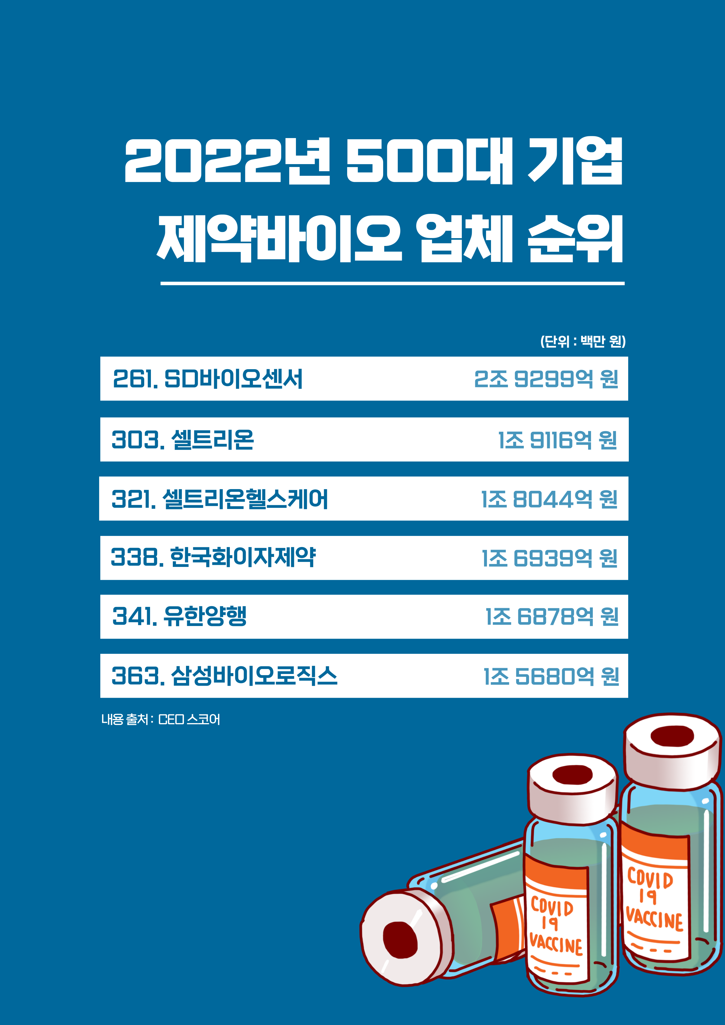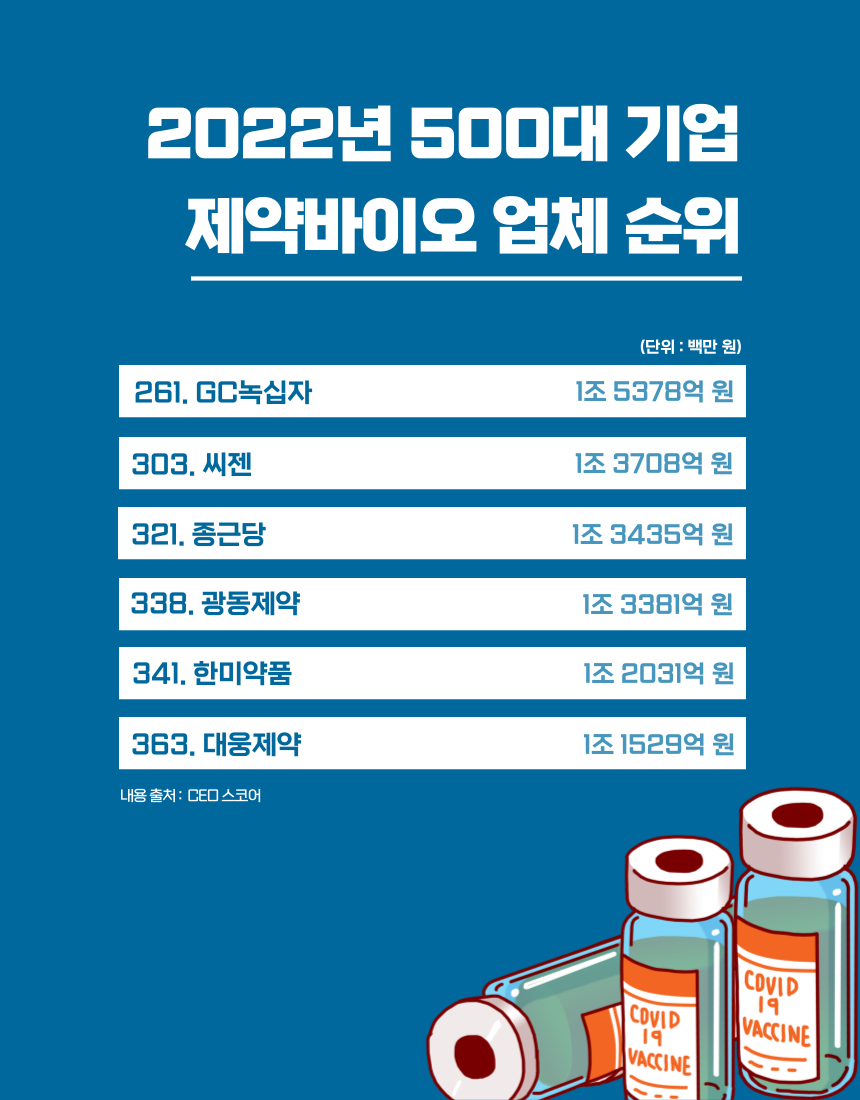 2022년 500대 기업 중 제약·바이오 업체 순위는?