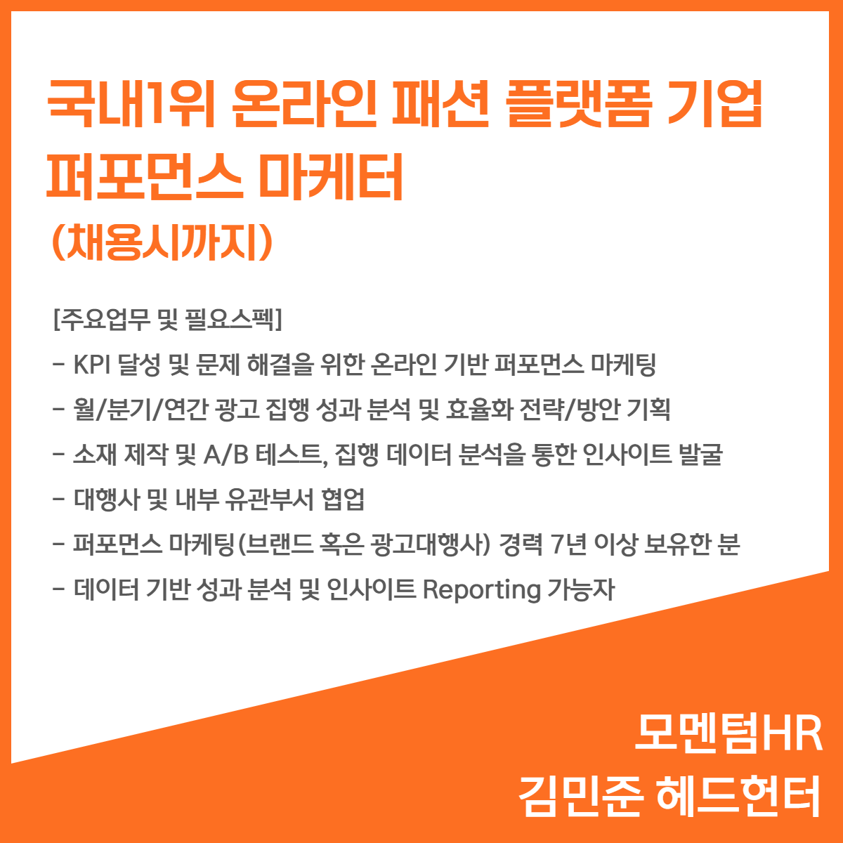 📢 [온라인 패션 플랫폼 기업] - 퍼포먼스 마케터(채용시까지)