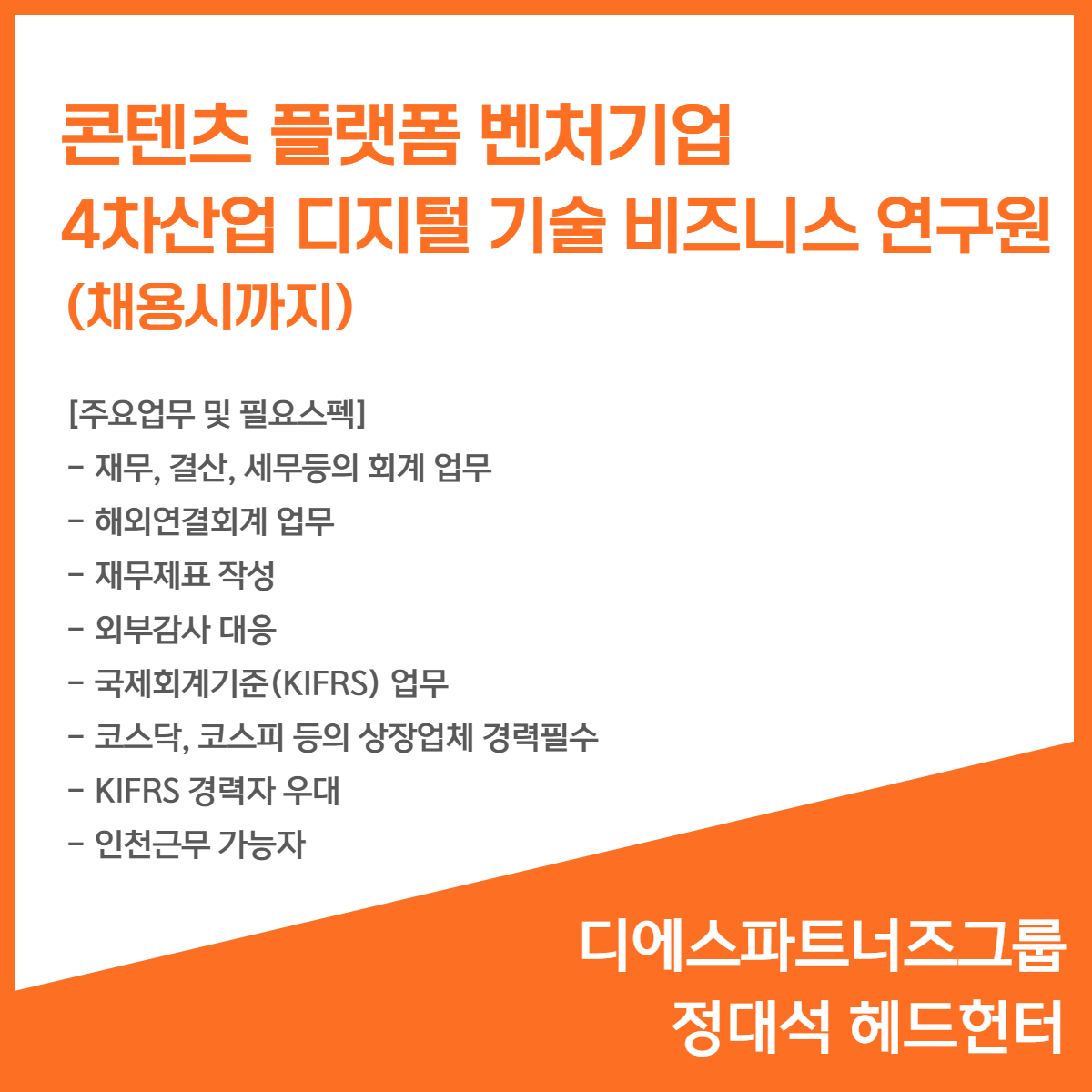 📢 [콘텐츠 플랫폼 벤처기업] - 4차산업 디지털 기술 비즈니스 연구원(채용시까지)