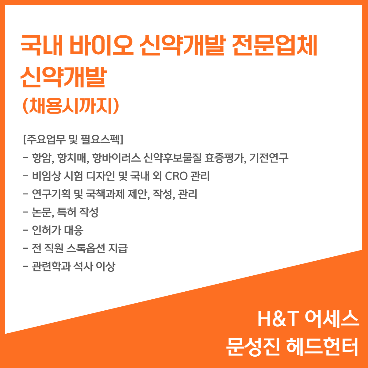 📢 [국내 바이오 신약개발 전문업체] - 신약개발(채용시까지)
