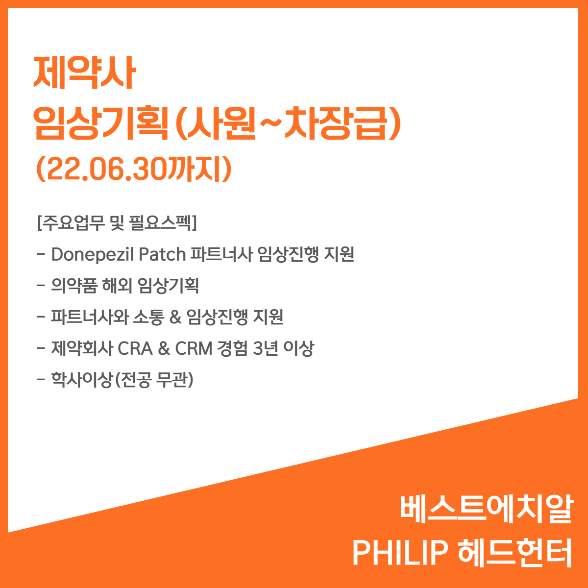 📢 [제약사] - 임상기획(22.06.30까지)