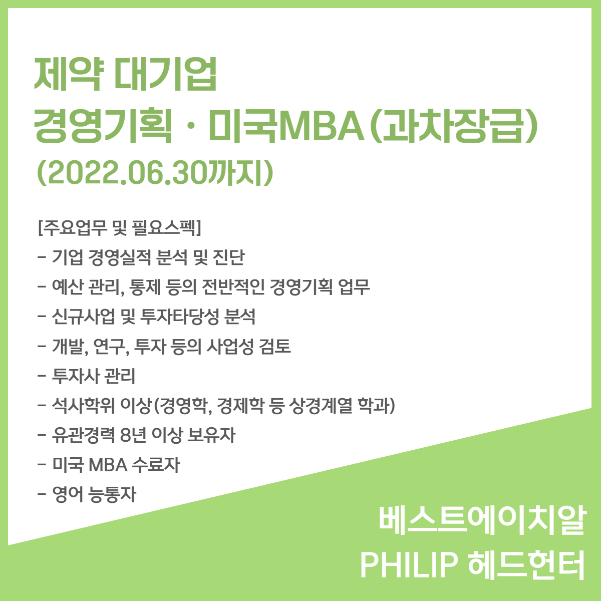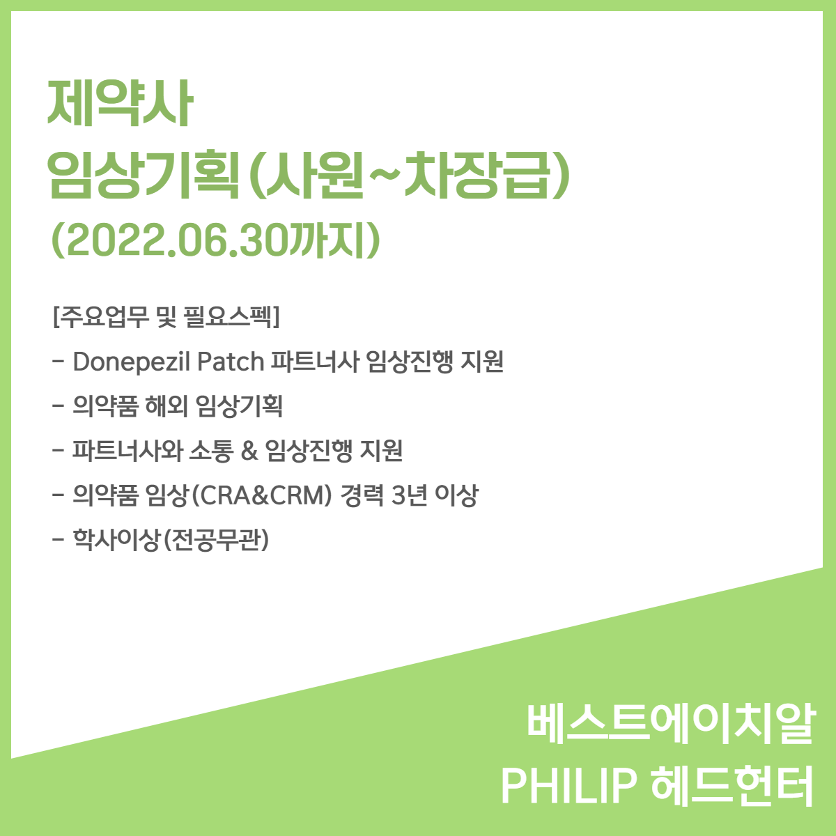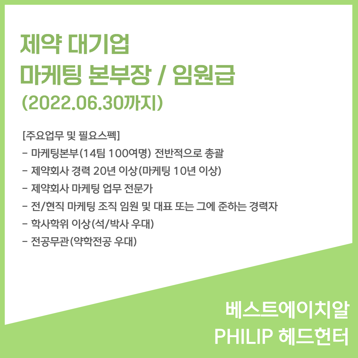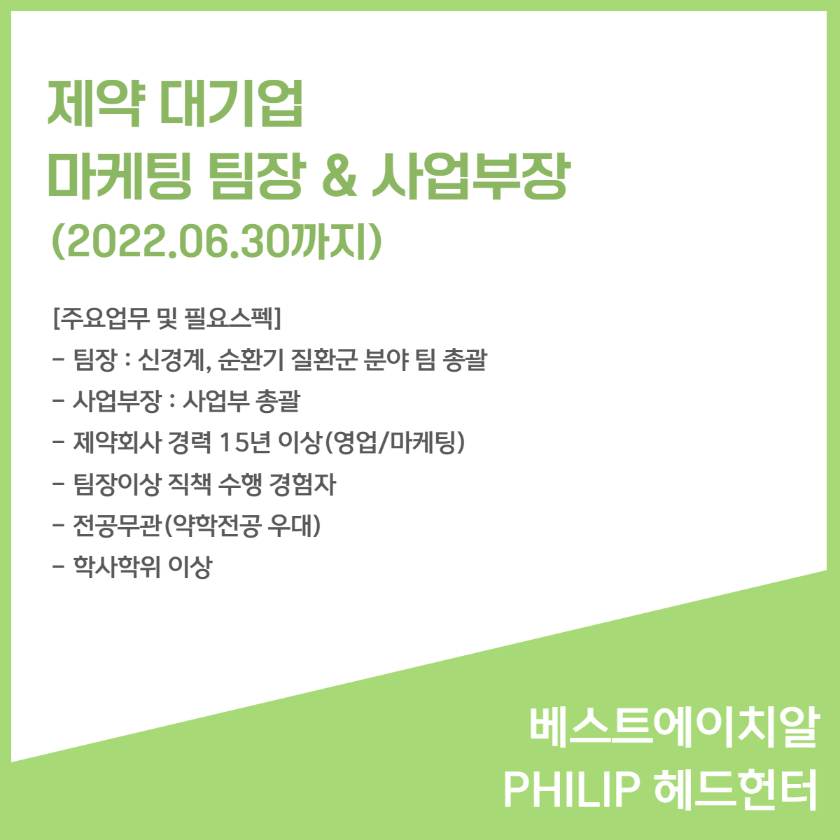 6월 신규 채용 소식 - 베스트에이치알 PHILIP 헤드헌터