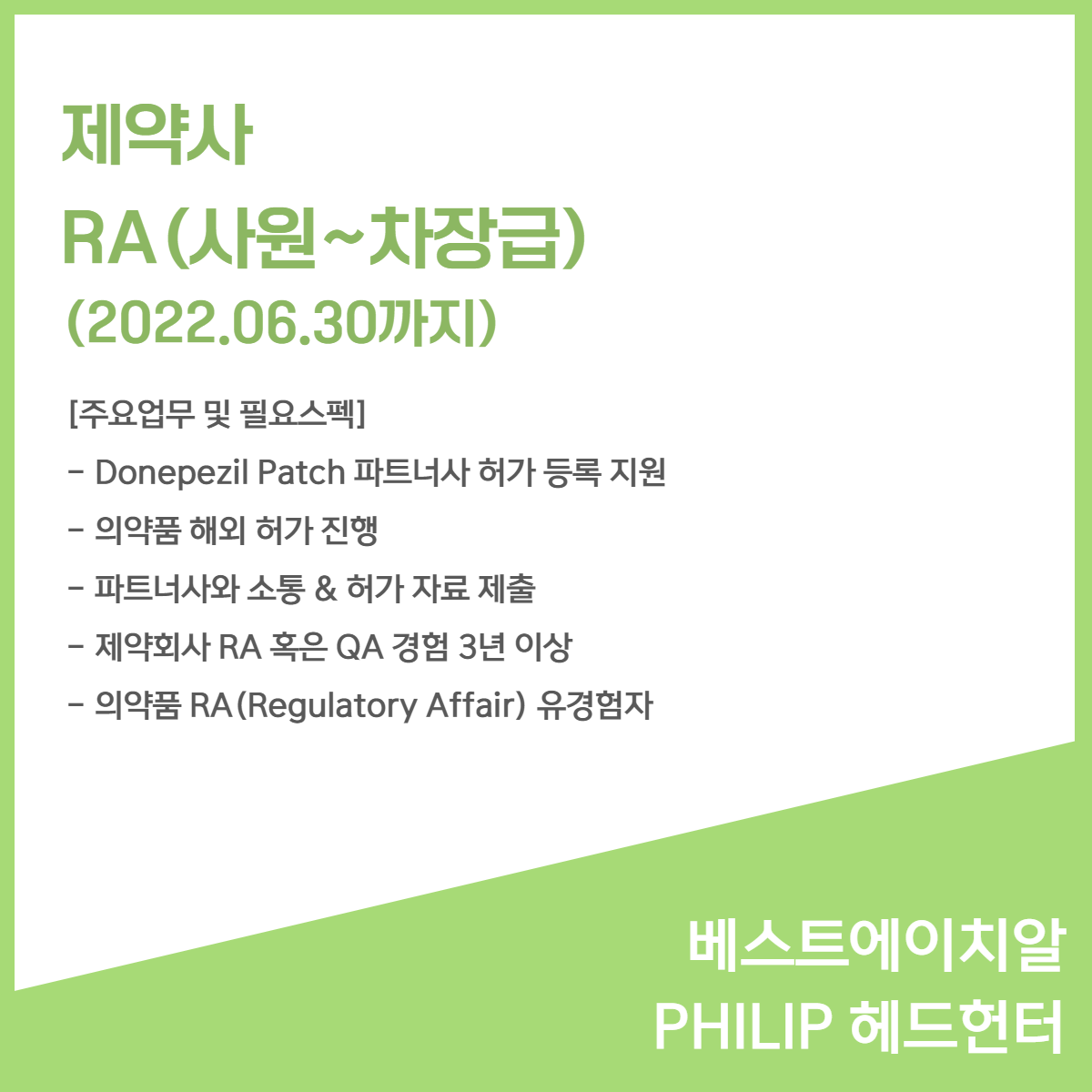 📢 [제약사] - RA 사원~차장급(22.06.30까지)