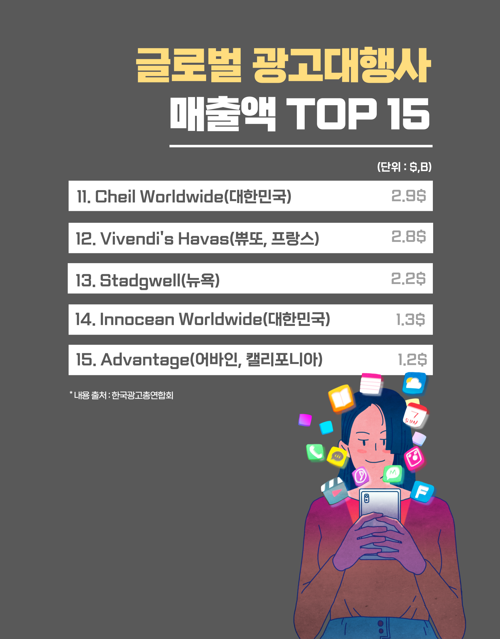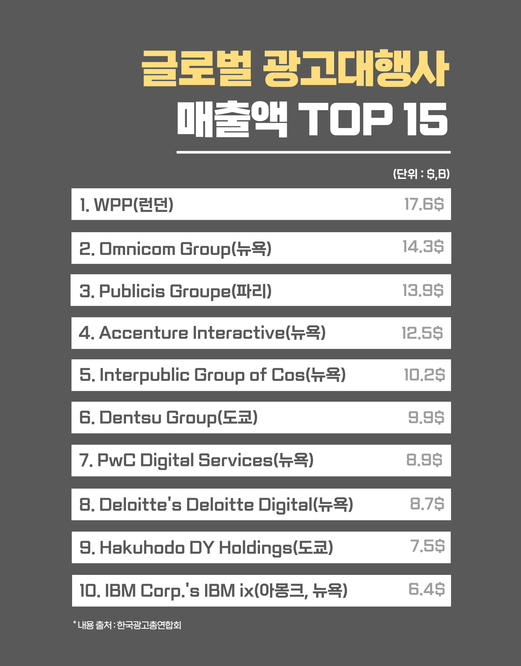 글로벌 광고대행사 매출액 TOP 15 (+국내 10대 광고대행사)