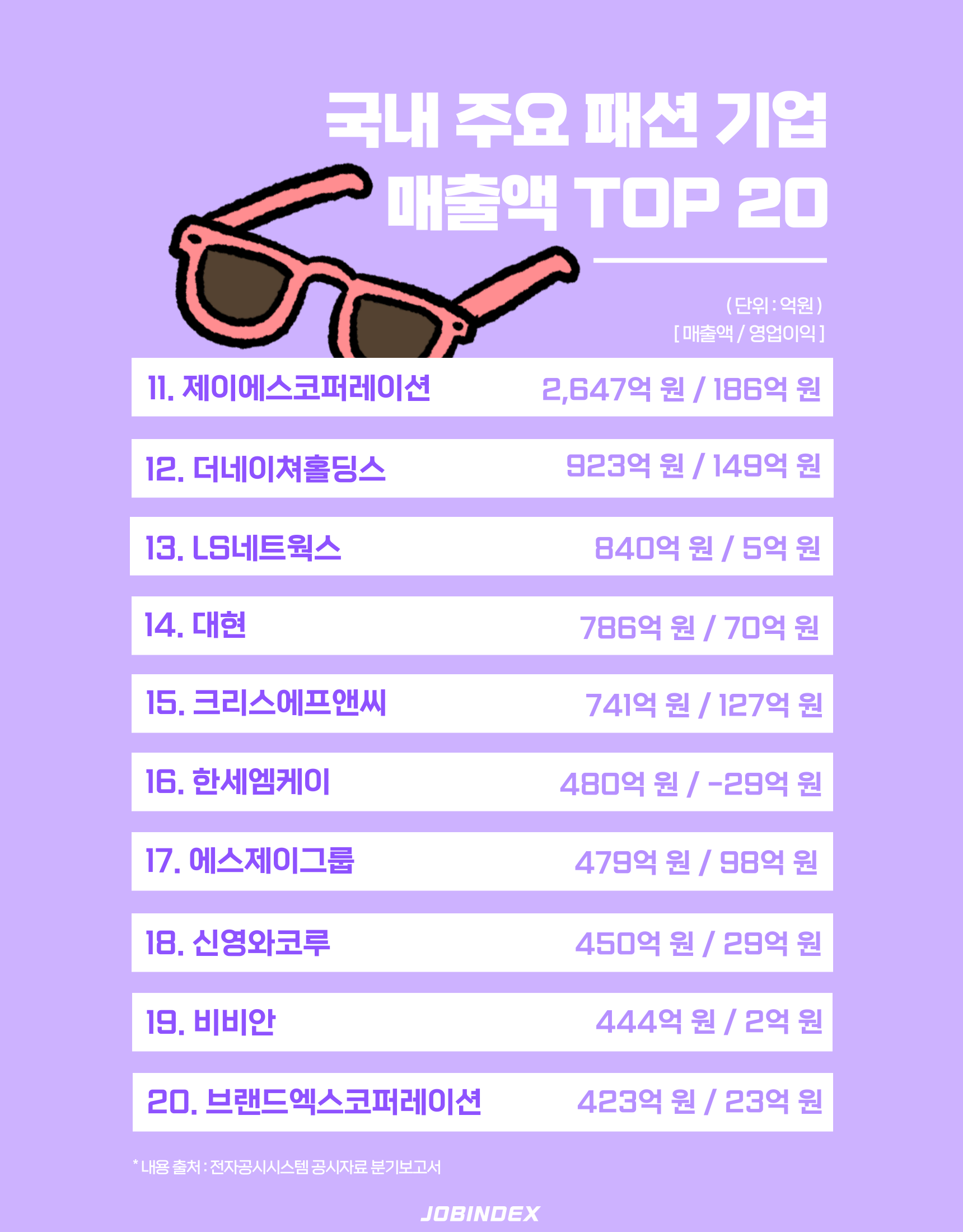 국내 주요 '패션기업 매출액' TOP 20(+영업이익)