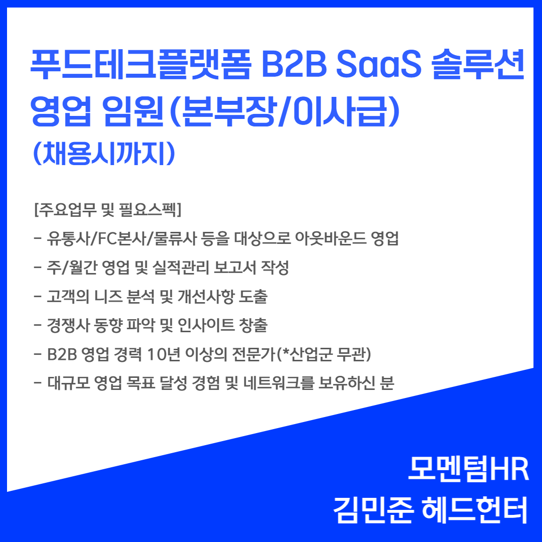📢 [푸드테크 플랫폼 B2B SaaS 솔루션] - 영업 본부장(채용시까지)
