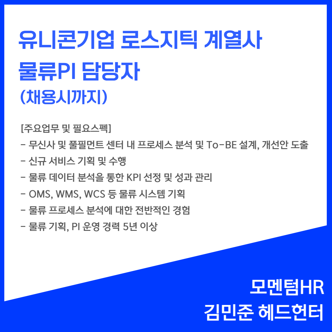 📢 [유니콘기업 로스지틱계열사] - 물류PI 담당자(채용시까지)
